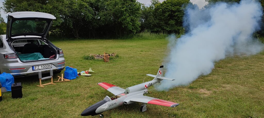 1. Podczas ostatniego pikniku w Pile z powodu obluzowanego tłumika silnik podczas niskiego przelotu na niskich obrotach zgasł. Musiałem lądować w wysokiej trawie, i złamałem śmigło. Resztę pikniku przelatałem na pożyczonym od kolegów modelarzy. Zamówiłem nowe i co by na dobre wyszło zostało umakietowione oznaczeniami