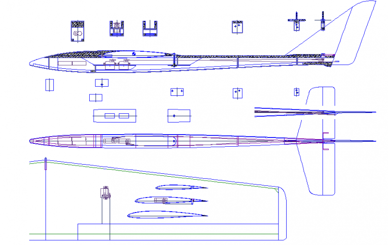 Postawiłem pierwsze kreski. Na zielono zaznaczyłem wręgi, linie czarne to obrys kadłuba. Rysunek to oczywiście szkic, dokonałem przesunięcia kilku wręg w stosunku do oryginału. zastanawiam się nad ukształtowaniem kadłuba w rzucie z góry podobnie jak akrobatach typu extra czy egde. taki motoszybowiec akrobat. co o tym myślicie?