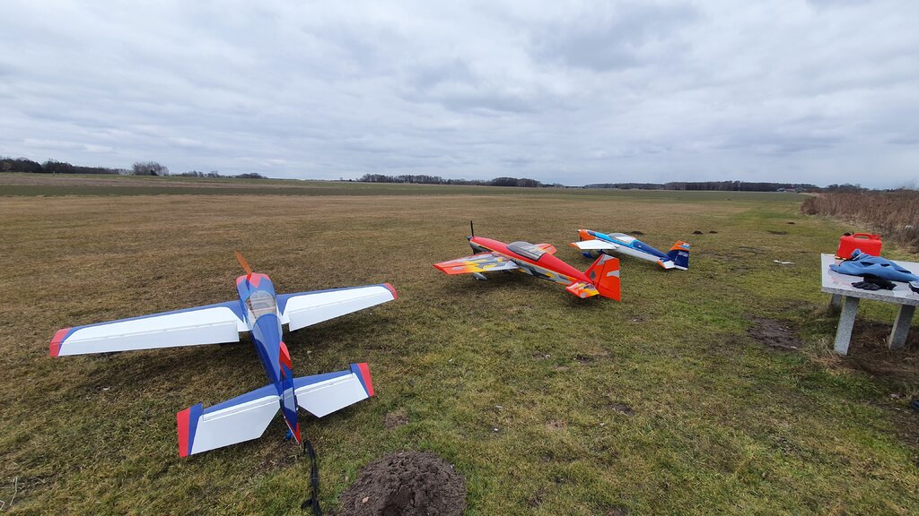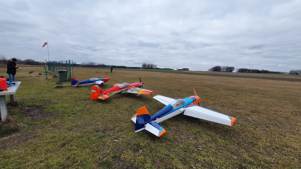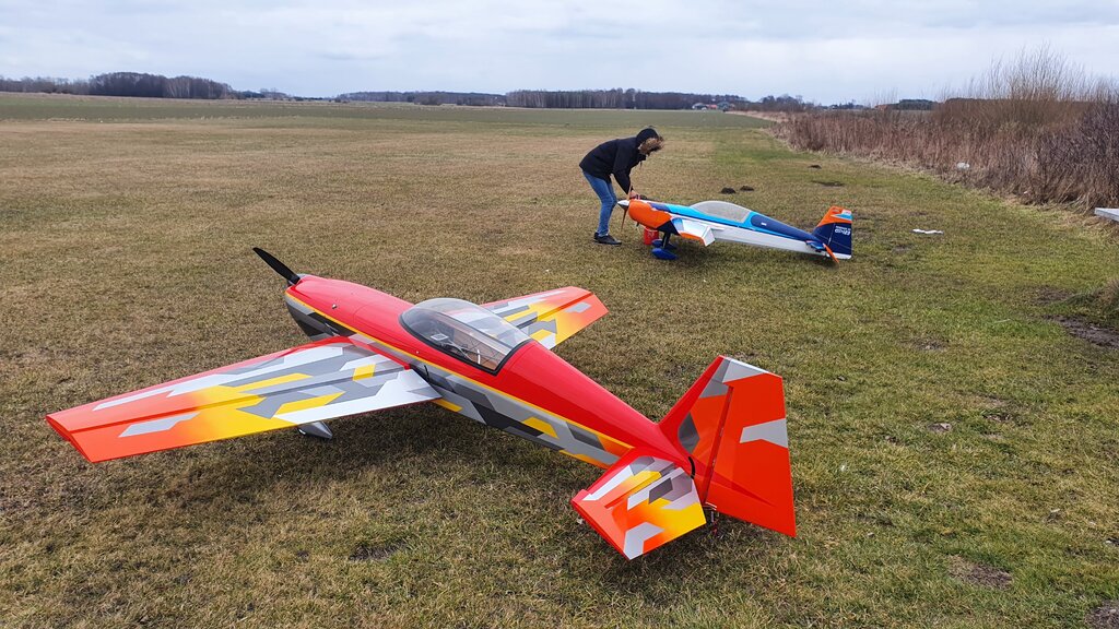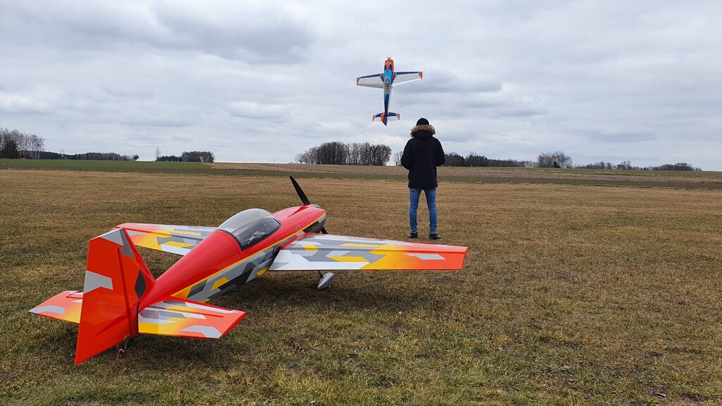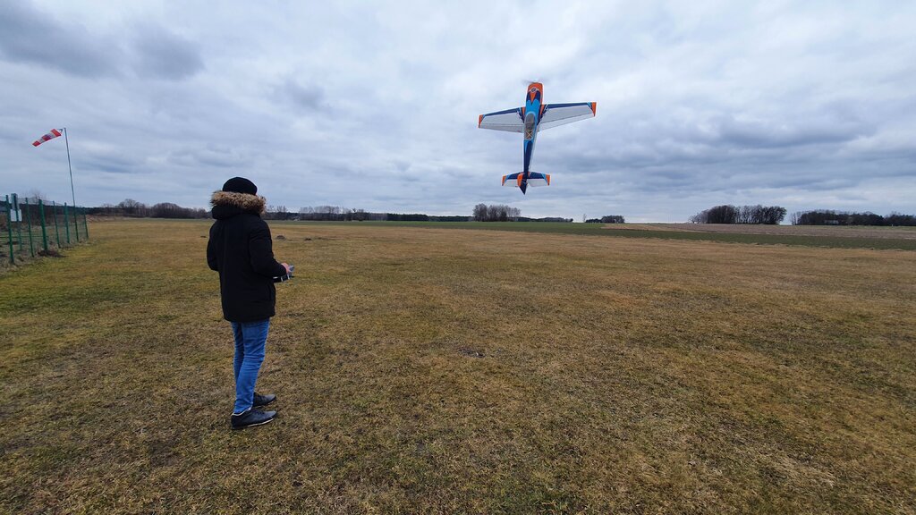 Kolejne loty modelem, wraz z Marcinem i Tomkiem wykorzystaliśmy dziś piękną zimową pogodę. Mogę już stwierdzić, iż Extra ma potencjał trzeba się teraz wlatać i trochę poustawiać CG i wychylenia, no i dotrzeć silnik, choć to już mój 3trzeci GP więc zaufanie do firmy mam.