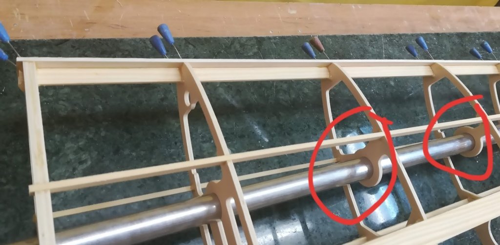 Dać mocną twardą balsę, dodatkowo w części żeberka z przodu, tu gdzie wchodzą rury ustalające przykleiłbym z jednej strony balsę 2mm. -