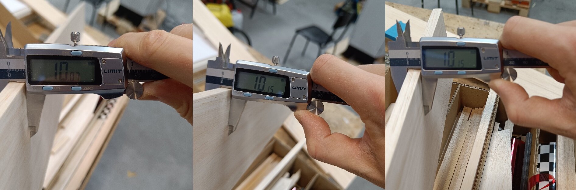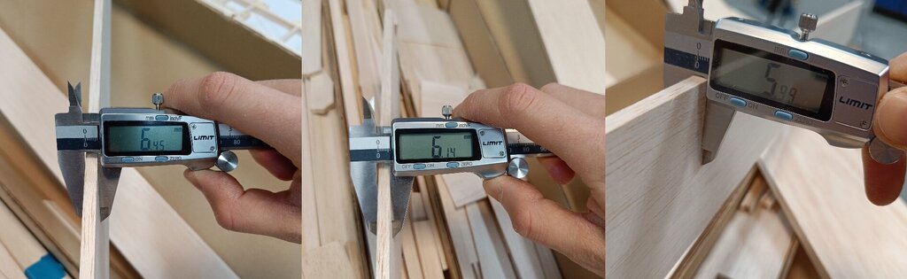 @Ares Ciężko złapać dobre zdjęcie po długości. Idealnie proste nie są, lekki banan jest, dla mnie w akceptowalnych granicach. Deska 6mm mierzona na początku, w środku i na końcu: To samo dla deski 10mm: Deska 6mm waży 70g, deska 10mm 94g, więc balsa średnio miękka i miękka. -