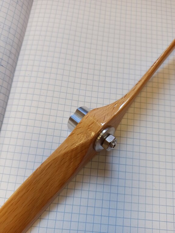 24. Mam takie mocowanie śmigła do silnika: Przy mocowaniu samego śmigła jest ok ale z dodanym kołpakiem brakuje gwintu Jakieś pomysły jak to poprawić?