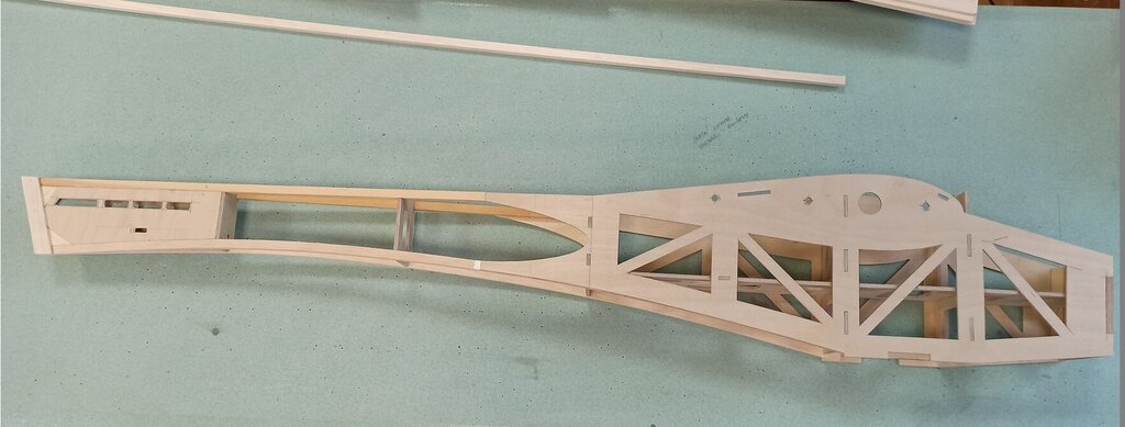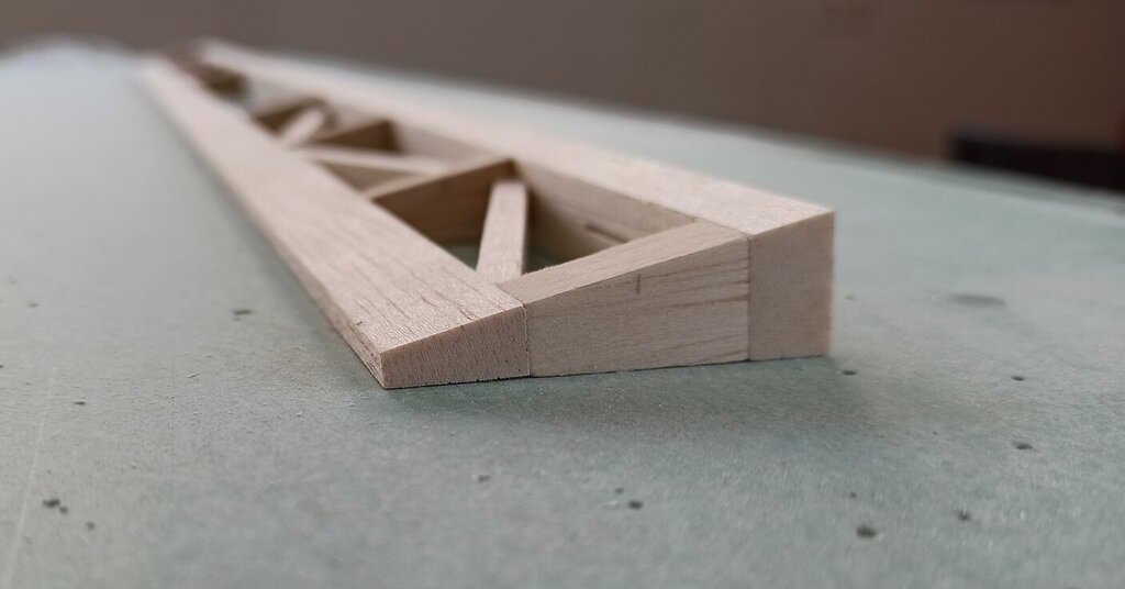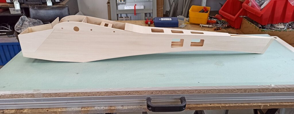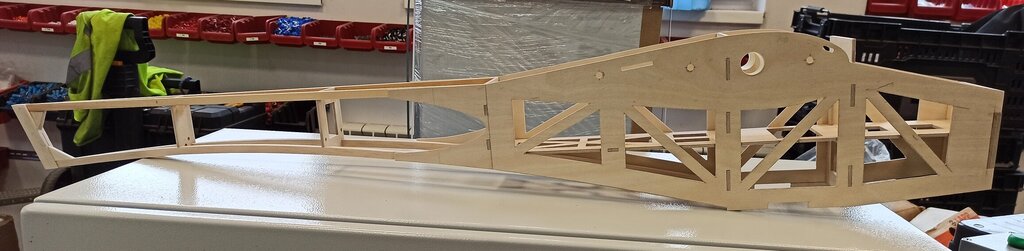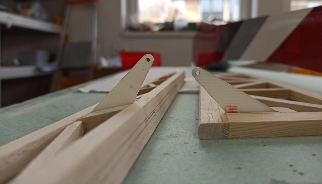 Tym razem krótko: Przy składaniu na sucho okazało się, że źle narysowałem wpusty w wrędze poziomej, więc musiałem dorobić nowy element. Rysuję wszystko w AutoCadzie 2D, dlatego nie udało się wyłapać pomyłki na etapie projektowania. Całość po przejechaniu klejem docisnąłem prowizoryczną prasą. Po wyschnięciu kleju na powierzchniach styku, zalewam jeszcze łączenia przy użyciu igły i strzykawki. Tym razem wziąłem zwykłą igłę lekarską, ale dobrze się sprawdzają też takie z tępą końcówką. Używam ich głównie do cyjanoakrylu. Z CA najlepiej mi się pracowało końcówkami z HK, ale są dość drogie i nie zawsze dostępne. https://hobbyking.com/en_us/ex-long-ca-ex-tips-1pc.html?queryID=e480b50e50a96741e248e9a85a04b29f&objectID=38176&indexName=hbk_live_magento_en_us_products Dlatego zastąpiłem je takimi z ali https://pl.aliexpress.com/item/32954832765.html?spm=a2g0s.9042311.0.0.27425c0fC14W4t Zamówiłem ostatnio partię z mniejszą średnicą wewnętrzną, bo przy tych 22 gauge zdarzało się, że zostawała na końcówce kropla kleju. Na koniec przymiarka całego kadłuba, jeszcze bez klejenia. Najpierw chcę zrobić stery, żeby nie uciekły mi kąty przy łączeniu ogona. Ale to już po przerwie świątecznej.