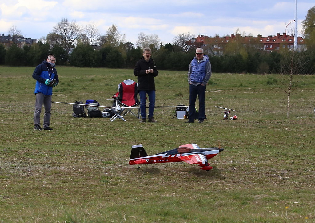 Sławek w swojej skromności zapomniał dodać, że to właśnie on wraz z Ryśkiem ujeżdzali szybowce w skali 1:1. Sławeczku szacun ! Ja z resztą naszej ekipy ujeżdzaliśmy w tym czasie tylko modele rc (jak w tym kawale ... 'Mówił, że jest pilotem...') Sanitarka Tadzia, po zimowej przerwie, znów w pięknym stylu wzbiła się w powietrze. W czwartek lot synchroniczny sanitarki Piterka i Tadzia . Może poleci Pawnee z H9 z Saito ? Kolejny ciekawy model Tomka Sławek, pilot szybowców skali 1:1 i mniejszych . Mati wyciskał z pakietu Pits'a ostatnie poty. '