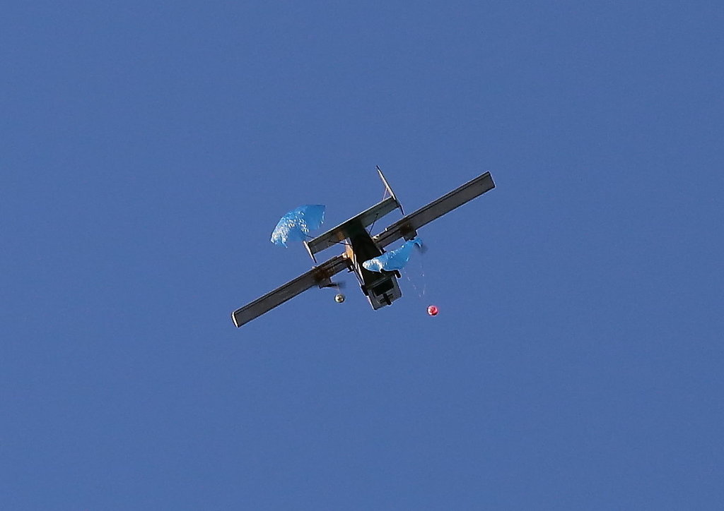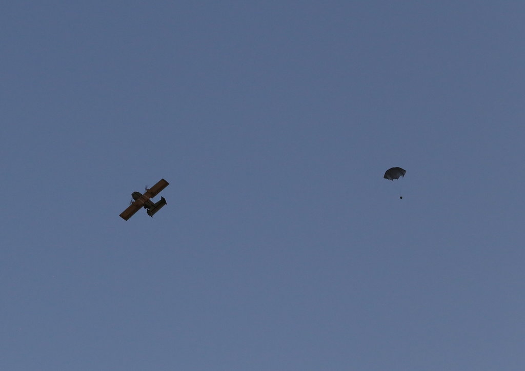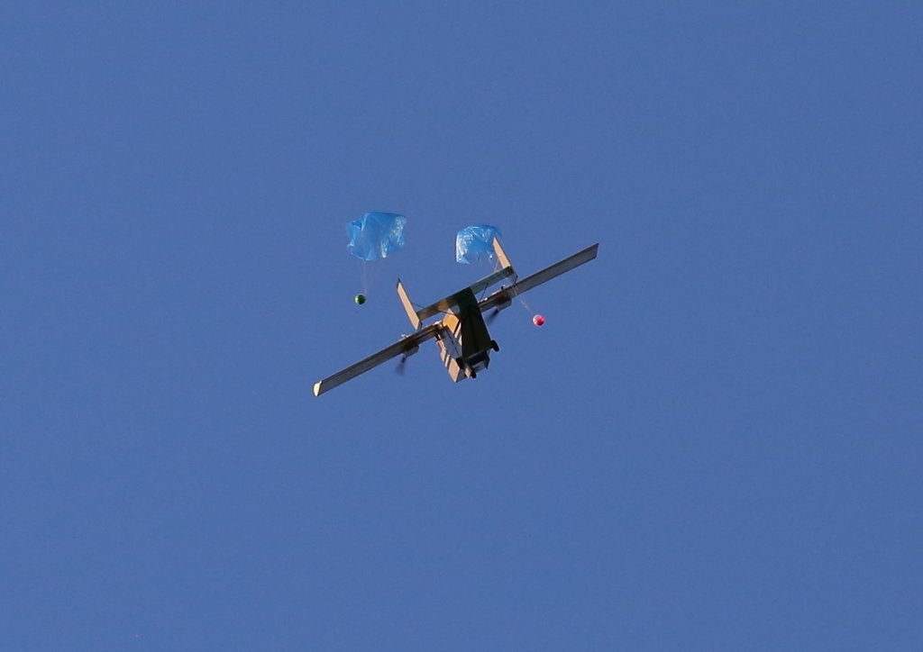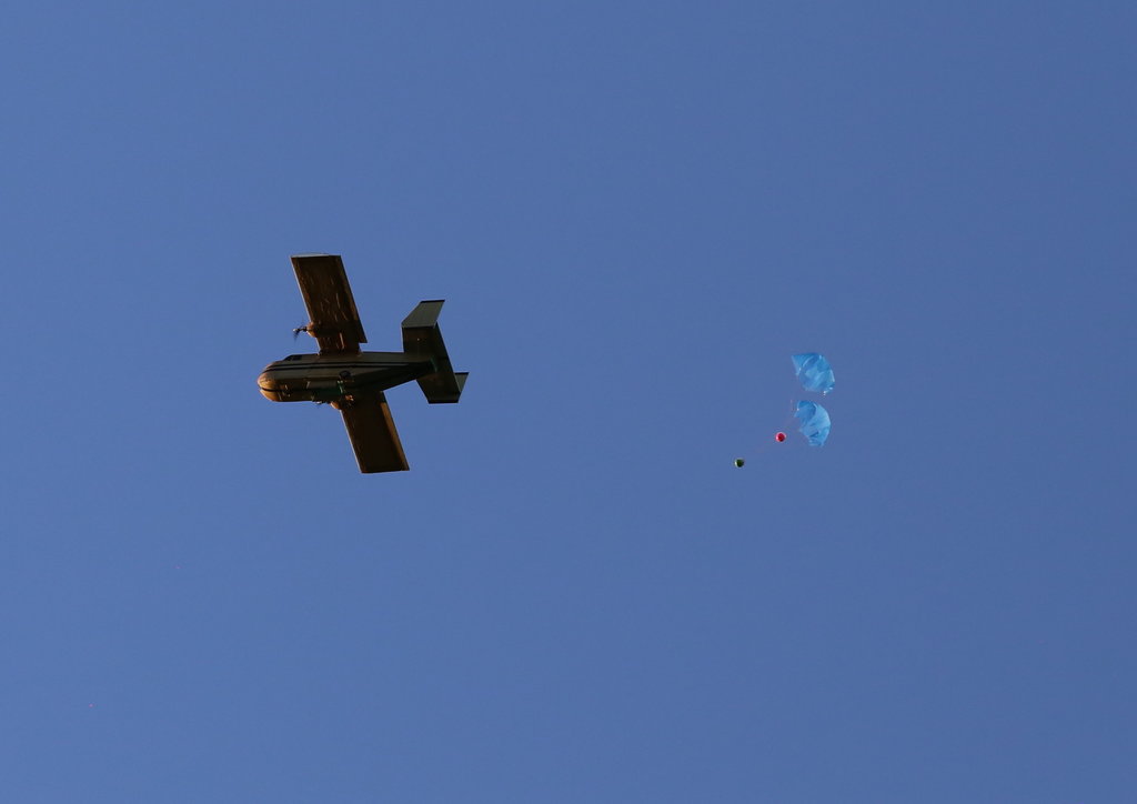Mam jeszcze kilka fotek "klamota" z dzisiaj. Tomek robił desant powietrzny 'księżycowych cukierków' dla dzieci . Zrzutem zainteresowały się nie tylko dzieci .