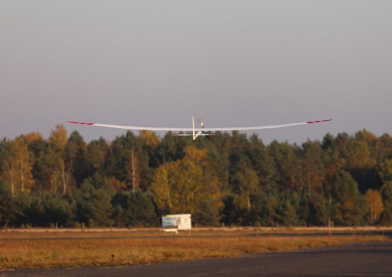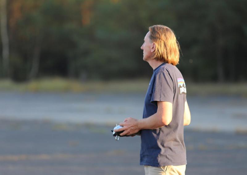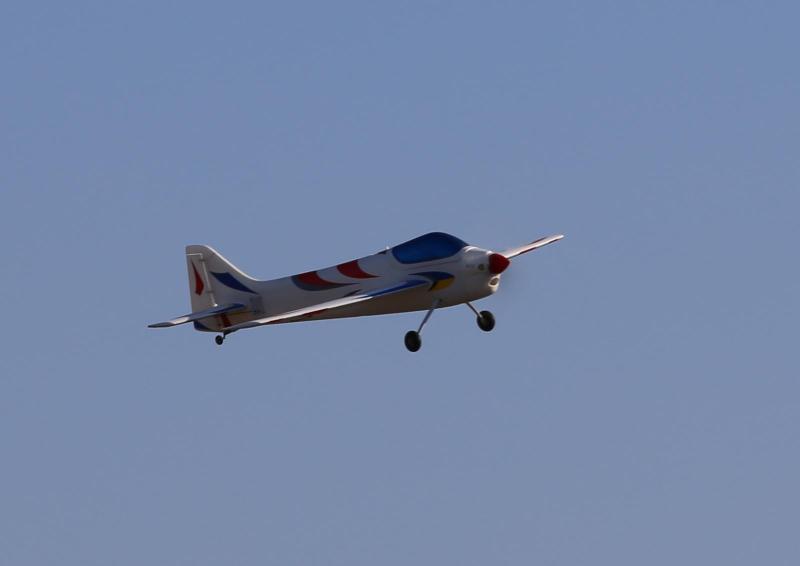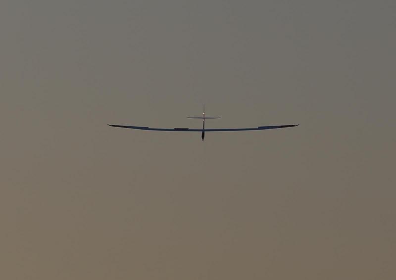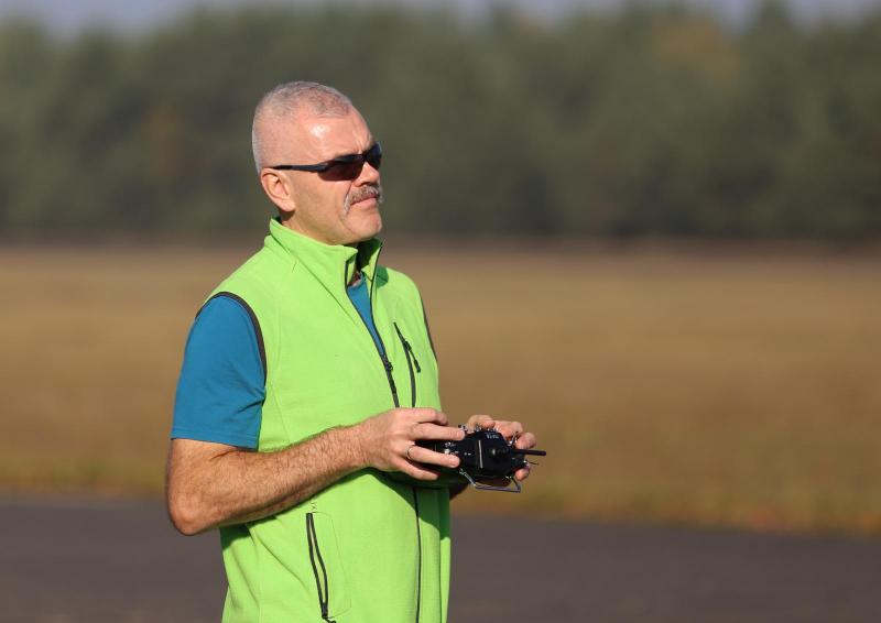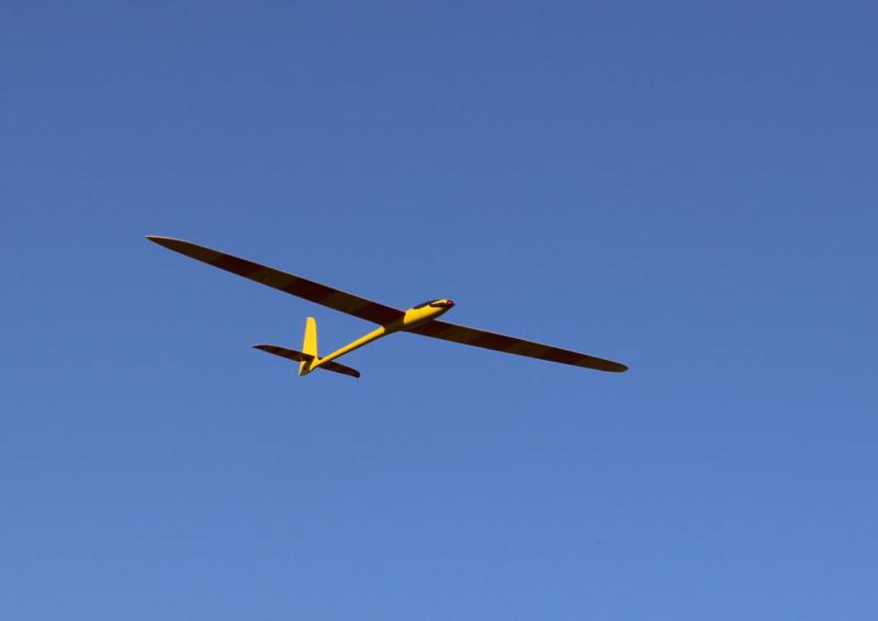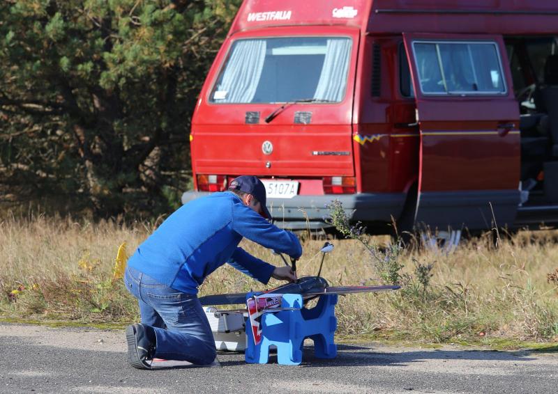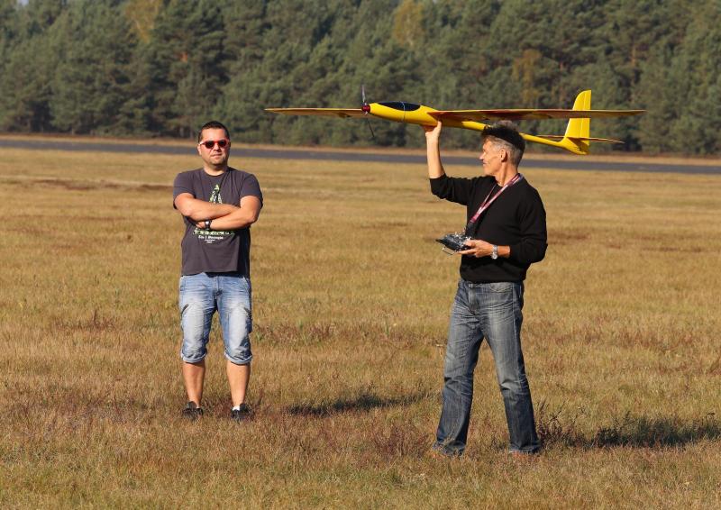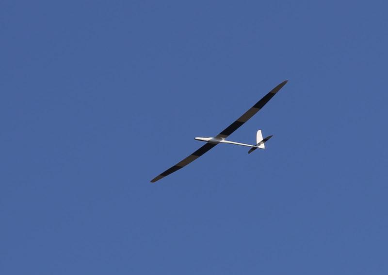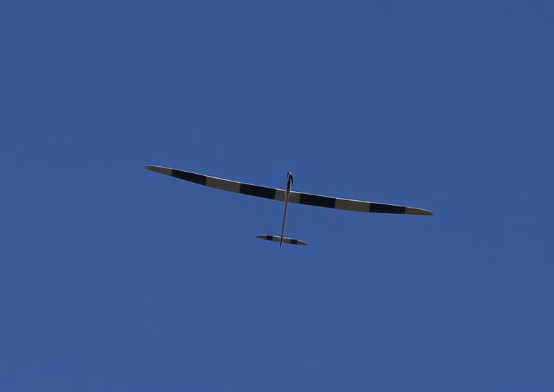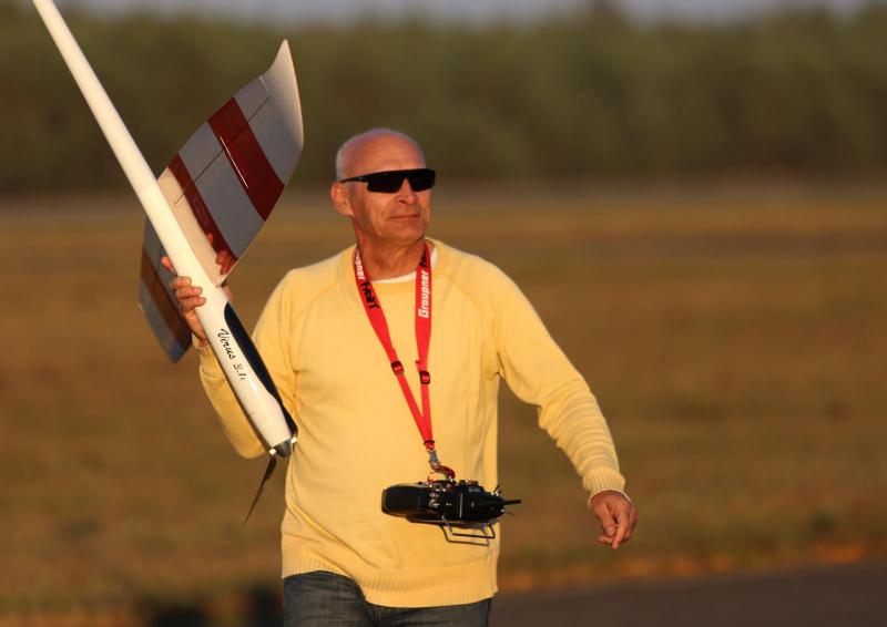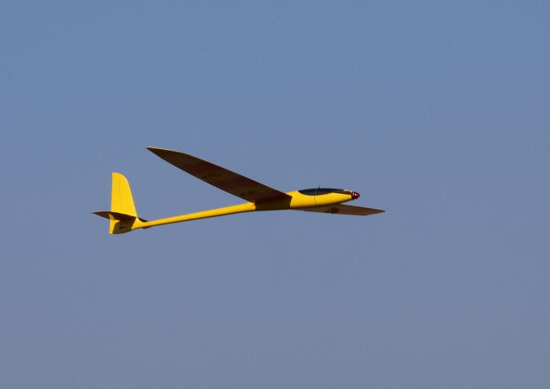 Chwilę polatałem. Lądował Sławek. Tak z ciekawości chciałem zobaczyć jak lata. Dużo 'różnych ciekawych' rzeczy czytałem na temat modeli tego producenta …. Chciałem przekonać się na własnej skórze ... Dużo zależy od ustawień modelu jak i nadajnika … Tak po kilku minutach kręcenia ósemek mogę powiedzieć, że model lata bardzo lekko, czuć tą lekkość w powietrzu w pozytywnym tego słowa znaczeniu. Równocześnie zadziwiająco dobrze trzyma sie powietrza w trudnych turbulentnych warunkach. Jest to juz dość stara konstrukcja ale naprawdę daje rade. Bardzo uniwersalny model. Model bardzo poprawnie czyt. schludnie wykonany w przeciwieństwie do Whisper'a, modelu naszego Kolegi, który musiał dużo pracy włożyć aby model 'wyglądał'. Brakuje mi troche węglowego, skrzynkowego bagnetu co by bylo można tam co nieco włożyć. Generalnie bardzo pozytywne wrażenie.