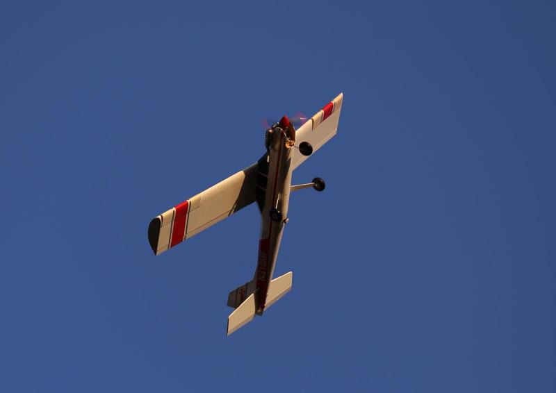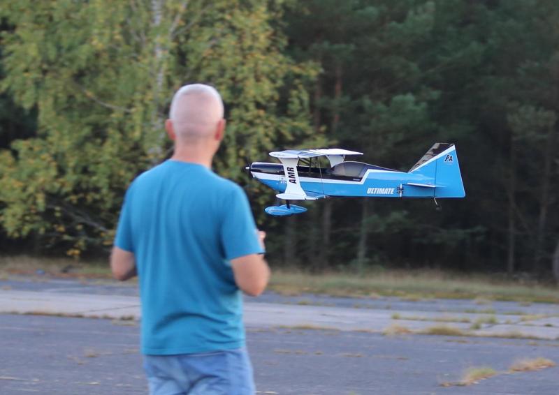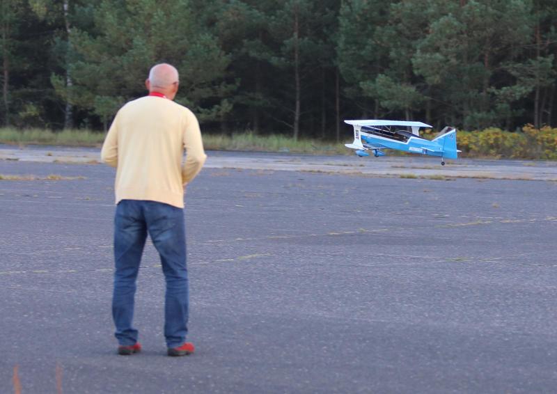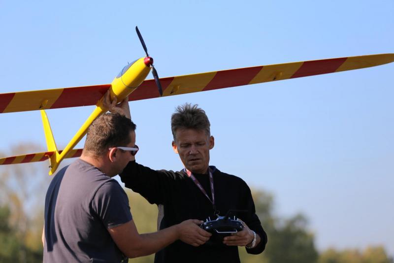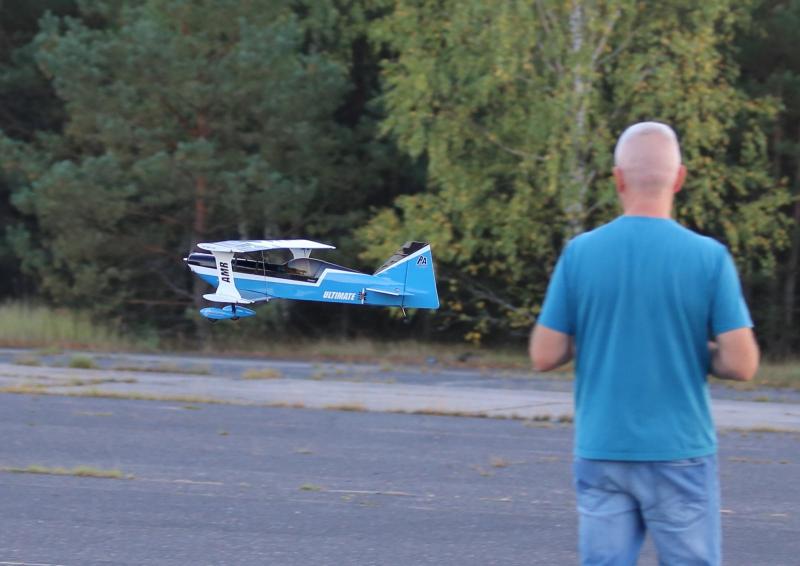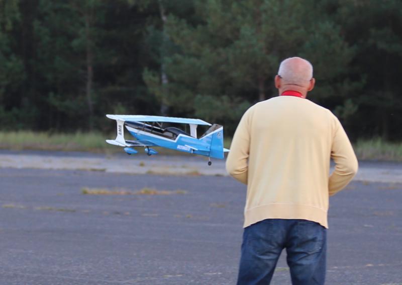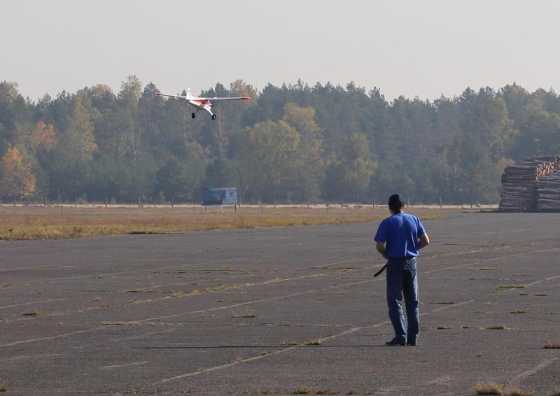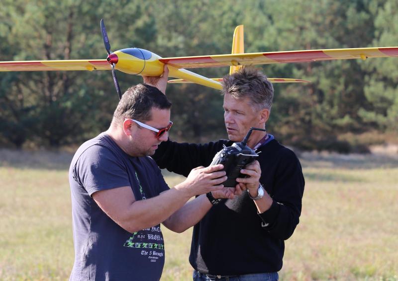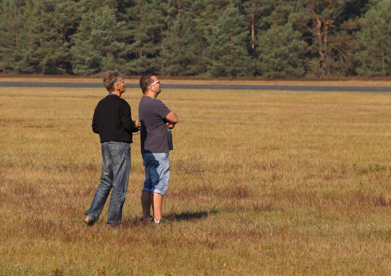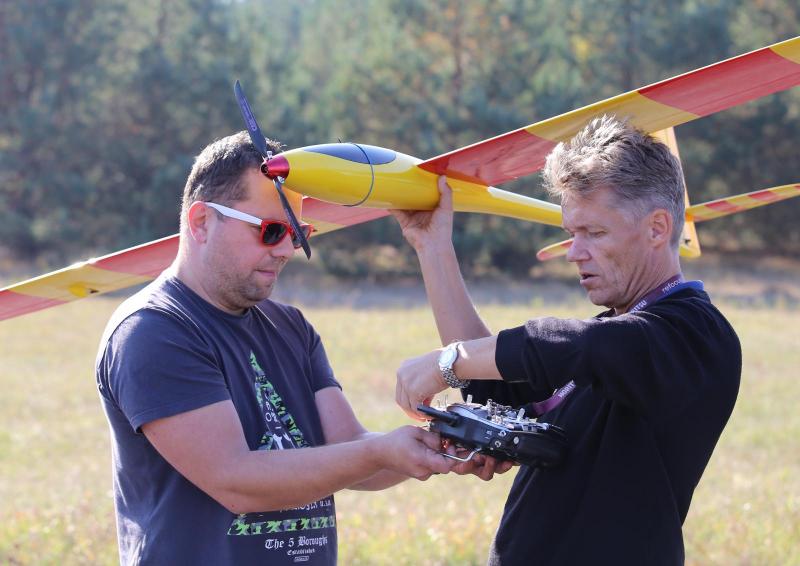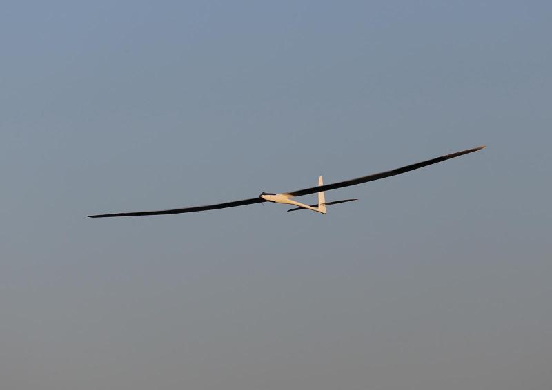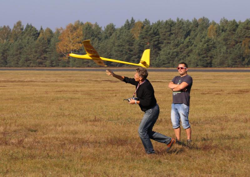 Chwilę polatałem. Lądował Sławek. Tak z ciekawości chciałem zobaczyć jak lata. Dużo 'różnych ciekawych' rzeczy czytałem na temat modeli tego producenta …. Chciałem przekonać się na własnej skórze ... Dużo zależy od ustawień modelu jak i nadajnika … Tak po kilku minutach kręcenia ósemek mogę powiedzieć, że model lata bardzo lekko, czuć tą lekkość w powietrzu w pozytywnym tego słowa znaczeniu. Równocześnie zadziwiająco dobrze trzyma sie powietrza w trudnych turbulentnych warunkach. Jest to juz dość stara konstrukcja ale naprawdę daje rade. Bardzo uniwersalny model. Model bardzo poprawnie czyt. schludnie wykonany w przeciwieństwie do Whisper'a, modelu naszego Kolegi, który musiał dużo pracy włożyć aby model 'wyglądał'. Brakuje mi troche węglowego, skrzynkowego bagnetu co by bylo można tam co nieco włożyć. Generalnie bardzo pozytywne wrażenie.