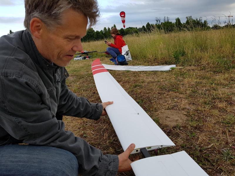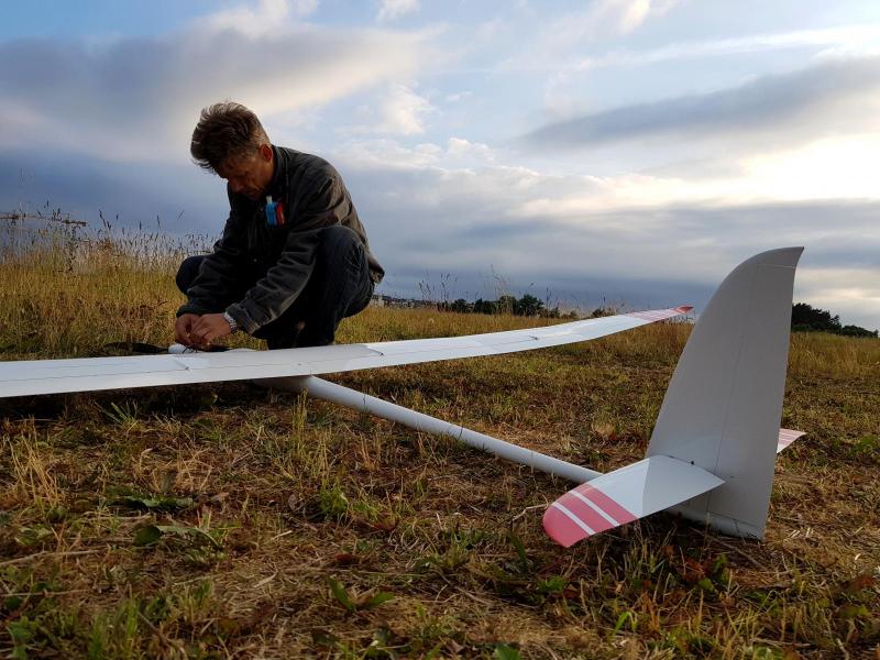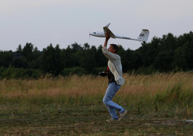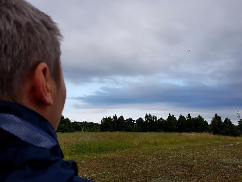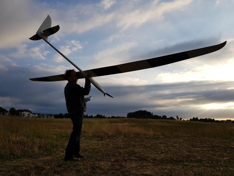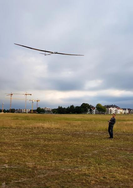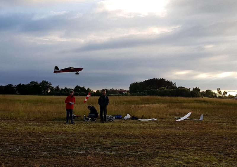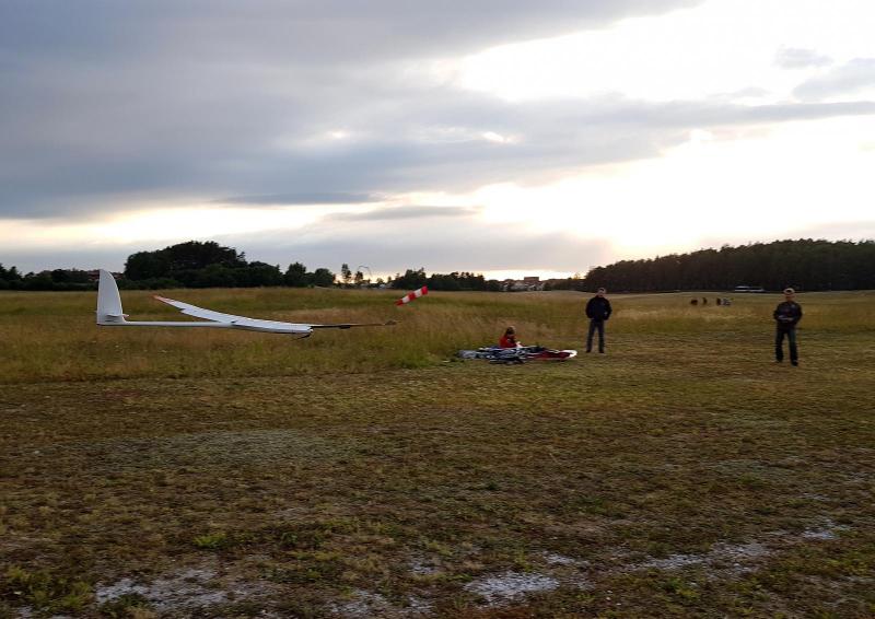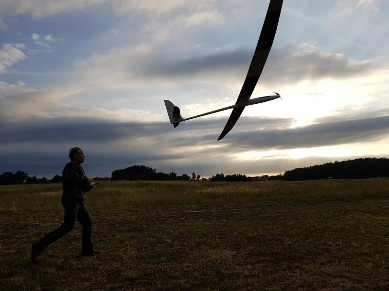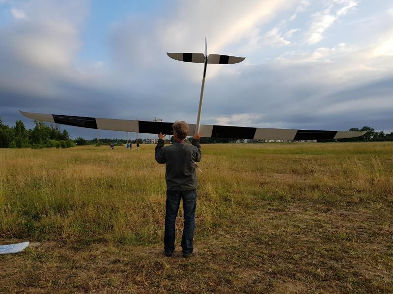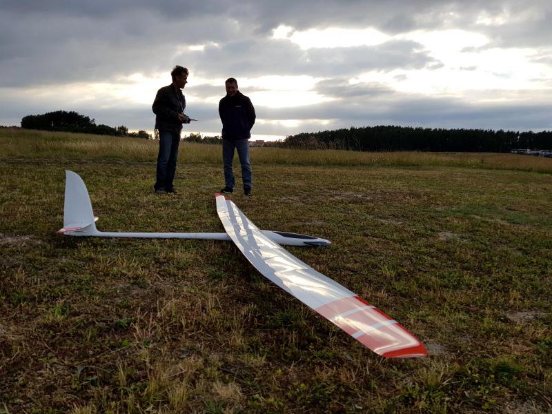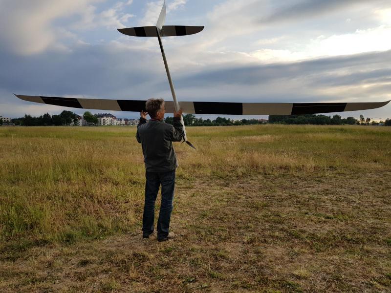 4. W koncu udalo sie namowic Sulka aby wpadl z 'olbrzymem' czyt. XXXL od Valenty na Chwarzno bo zazwyczaj lata w miejscach bardziej odpowiednich na taki model. Pare zdjęć na początek pokazujących jego wielkość. Potem juz loty. Taki model w rekach (palcach) Sulka to poezja. Przeloty tuz nad trawami przy zachodzącym sloncu na granicy przeciagniecia to cos pięknego Niestety z tej radości tak sie spieszyliśmy z Matim na pole, ze zapomniałem aparat i pozostalo mi zrobić 'pare' fotek telefonem. Obiecuje sie poprawić przy następnym spotkaniu.
