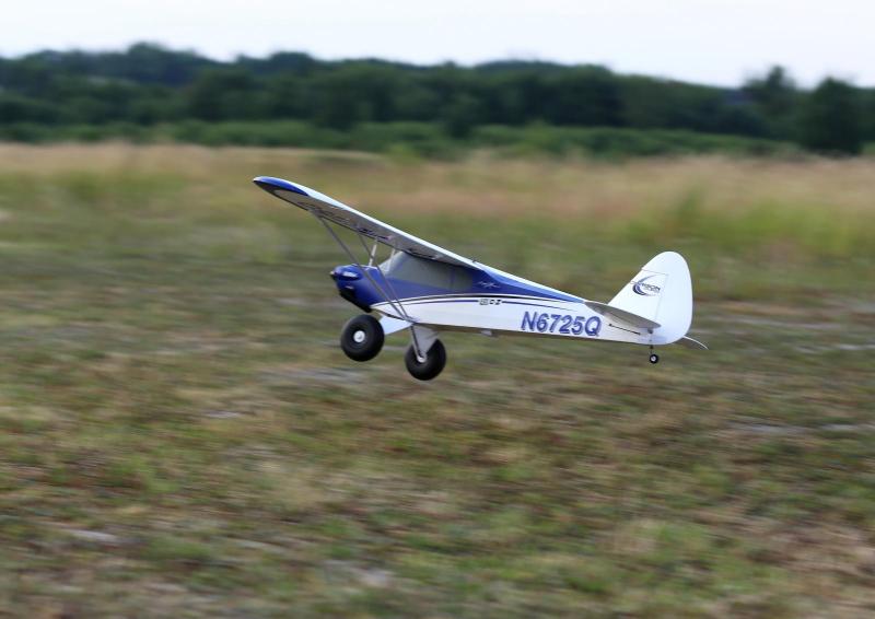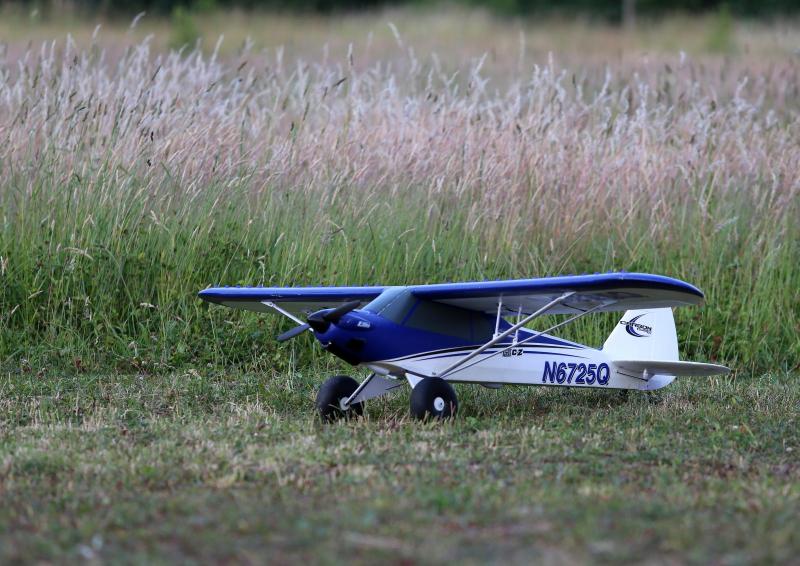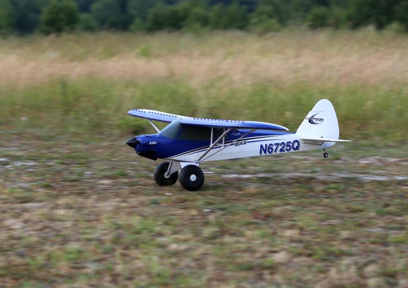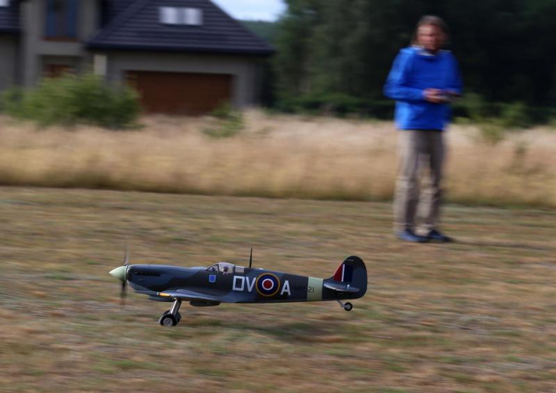3. Kilka fotek Carbon-Z Cub od E-Flite. Na początek jako treningowy holownik sie nada Trzeba teraz tylko zdemontować napedy w naszych Heronach Na koniec jeszcze zaległy filmik z pierwszego lotu Spitfire 1600 od FlightLine. SC ustawiony na 100mm czyli 10mm dalej niż zalecany w instrukcji. Okazał sie jeszcze zbyt przedni. Zbyt duże wychylenia lotek (te zalecane) jak na pierwszy lot. Nerwowy krótki start i zbyt szybkie pierwsze lądowanie. Poza tym model zapowiada się bardzo interesująco. Szeroki zakres prędkości. Max prędkość w locie poziomym zarejestrowana przez GPS to 131 km/h. W pionie w gore idzie praktycznie bez końca. Chowane i amortyzowane podwozie daje radę nawet na naszym polu które w tym roku nawiedziła susza i wyszły wszystkie nierówności. Model RTF. Wszystkie podzespoły wysokiej jakości (np regler firmy HobbyWing).