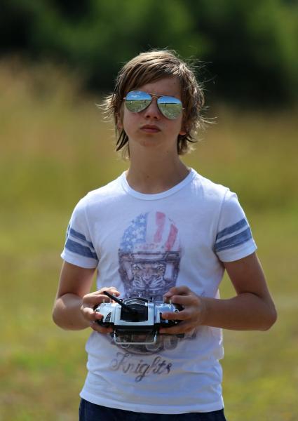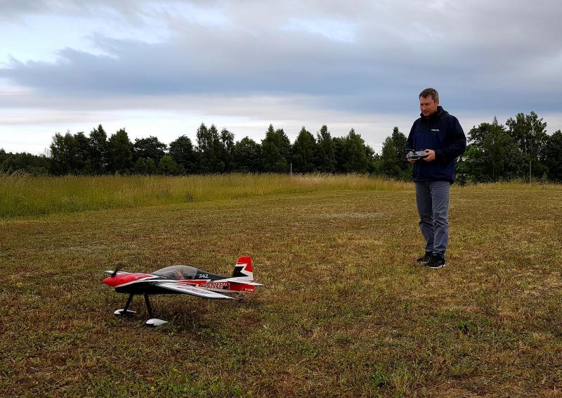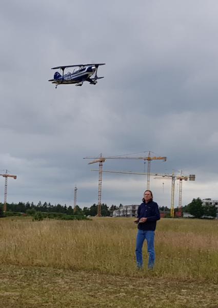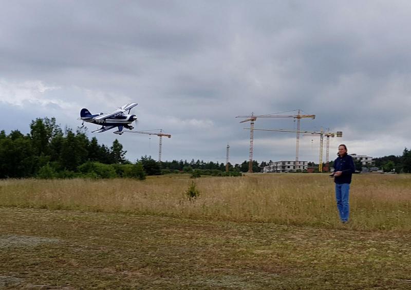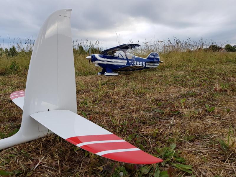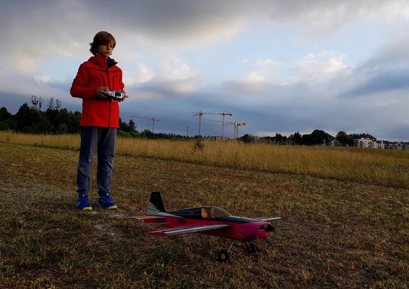 5. Korzystajac z tego, ze byłem na polu wczoraj wieczorem sam (Piterek polatal pol godziny i wezwaly go obowiązki rodzinne) bawiłem sie ustawieniami Pitts'a. Ustawienia fabryczne niewiele sie maja do tych końcowych. Od wczoraj model jak na 'pudlo rezonansowe ze strunami' lata kapitalnie. Czuc jeszcze ten ciezki wirujacy kołpak. Bede musial go zmienić na cos lżejszego.