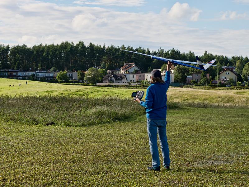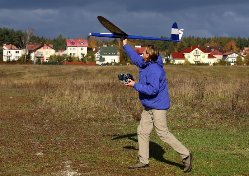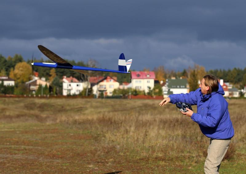 Witam, Po wersji modelu bez silnika, którym pochwaliłem się w dziale szybowce, przyszedł czas na kadłub elektro. Wyposazenie Silnik Ray G2 C2836-1120 77g Regulator Ray R-30B 26g Serwa 4 x HITEC HS 5056MG ( w skrzydłach zastosowałem model tego serwa z mocowaniem bocznym) Kolpak RF Lopatki RF 10x8 Pakiet 2200mAh 3S 45C 198g (przy takim pakiecie model wywazyl się bez uzycia dodatkowego balastu) SC 77 mm od krawędzi natarcia. Waga modelu gotowego do lotu 1030 g. Model oblatal nasz najmłodszy pilot - Matik Niektorzy obecni zostali poproszeni o nie przeszkadzanie w tak ważnym momencie i zajeli się pracami porządkowymi na lotnisku Za prosba Taty początkowo było wysoko ... ... ale już chwile później raczej nisko, nawet bardzo nisko. Cytuje: "Tato, szybowcem na rownym będziemy latac wysoko a z silnikiem możemy troche pofisiowac jak na zboczu !" Po wlataniu się w model nie obylo się oczywiście bez tak popularnego w ostatnim czasie wśród naszej młodzieży "lapania konikow polnych" Po czym nastapil powrot do wyższych lotow na tle kończącego się dnia Tego dnia Dim polatal tyle ile się dalo. Polatal wspaniale. Jak to kiedyś Jerzy Markiton pięknie napisał "model z osrodka z tradycjami". Niestety to już koniec sierpnia i nasze laki zaczyna coraz czesciej zalewac mgla.