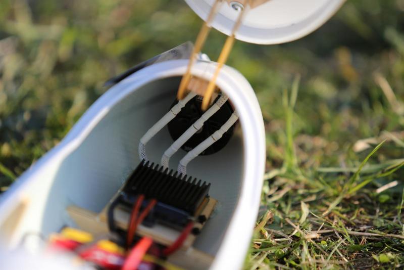 Moze Cie zaciekawi. Mojego Falcona 22 napedza silnik Ray 35-48 / 05 na 4S (Dualsky 4S 2800 mAh, 35C, 305g) smiglo 11x8, regler Dualsky light 65A, zwenetrzny BEC. Waga modelu gotowego do lotu (z weglowym bagnetem) 1,801 g. Model idzie w gore pod katem 60 stopni z predkoscia 20+ m/s. Pobor pradu max 60A. Kolpak turbo. Otworow nie wycinalem. Nic sie specjalnie nie grzeje.