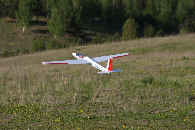 Niechcac tworzyć kolejnego watku o modelu pozwole sobie na pare spostrzezen na temat Dima w watku Jurka. Mój (nasz) Dim został oblatany. Serwa 4 x HiTec 5065 (dedykowane do modelu) Pakiet zasilający LRP LiPol 2200 mAh 81 g (L54 x W38 x H20mm) Regulator napięcia Pelikan Foxy UBEC 3A 7g Waga modelu gotowego do lotu 894 g SC 76 mm od krawędzi natarcia przy kadlubie W dziobek weszlo 40 g ołowiu Hak zamontowany 10 mm przed SC Guma 30 mtr x 6mm + 100 mtr zylki Oblot odbyl się wieczorowa pora przy wietrze ok 4 m/s i braku termiki. Model idzie w gore jak po sznurku. Można byłoby zastosować mocniejsza gume. http://youtu.be/Ef-Ahe9p8zM Drugi lot http://youtu.be/69L8EGND8ow A tu juz lot mojego Syna za dnia w termice. Model zachowuje się w powietrzu bardzo przewidywalnie. Bardzo ladnie pokazuje najmniejsze 'bable' cieplego powietrza. Latalismy w wietrze do 6 m/s i podmuchach. Takie warunki nie zrobily na modelu przy podanej wadze większego wrazenia. Balastu nie planuje. Model pięknie prezentuje się w powietrzu i dzięki nowemu malowaniu Pana Leszka jest lepiej widoczny niż np Falcon. http://youtu.be/QlLBigSHshE Dlugi majowy weekend Dim spedzil w Bieszczadach gdzie praktycznie każdy strzal konczyl się lotem bez końca. Teraz kolej na Klif. CDN