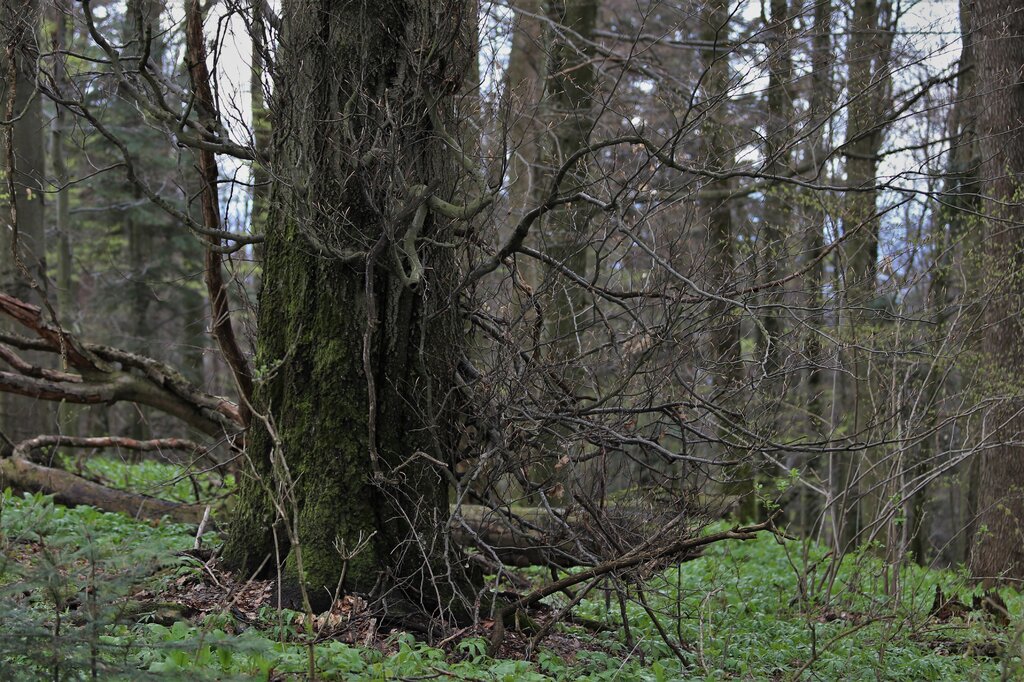Adam, Przewodniki podają: mural zwany deskalem Krzychu, Rzeżby w lesie robią niesamowite wrażenie. Chodzi mi po głowie zrobienie zdjęć ale w nocy przy sztucznym oświetlęniu . Tylko te wilki ... Prace znajdują sie w starym lesie bukowym, stare powykręcane, połamane buki, rosnące w trudnych warunkach na grzbiecie pasma górskiego. Trudno sobie wyobrazić lepsze miejsce, aby przedstawić ludzi zamieszkujących kiedyś te tereny.