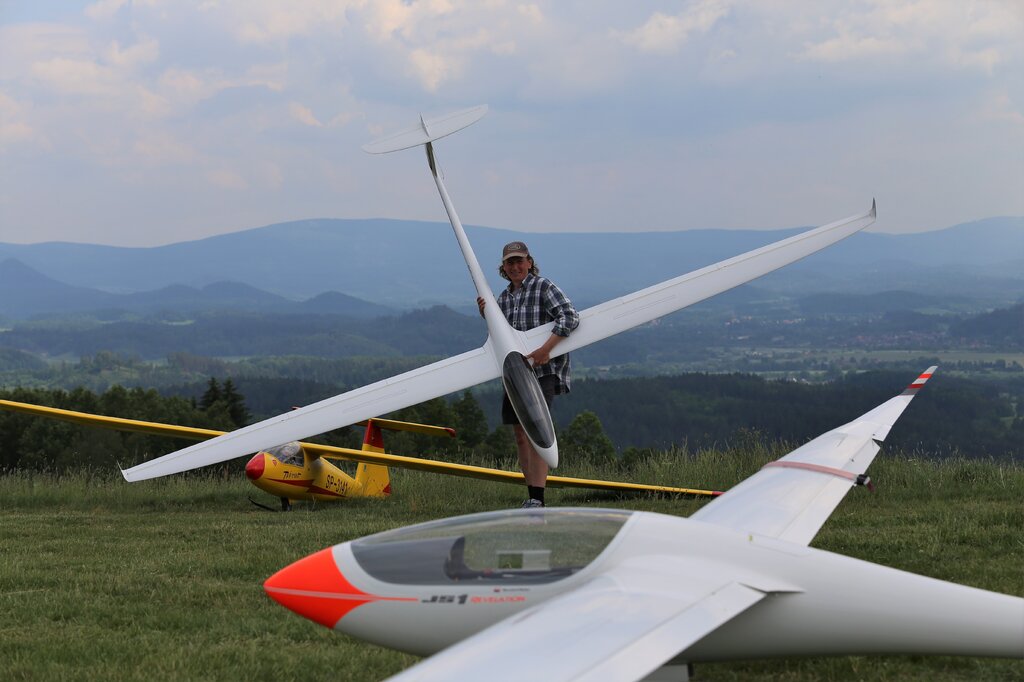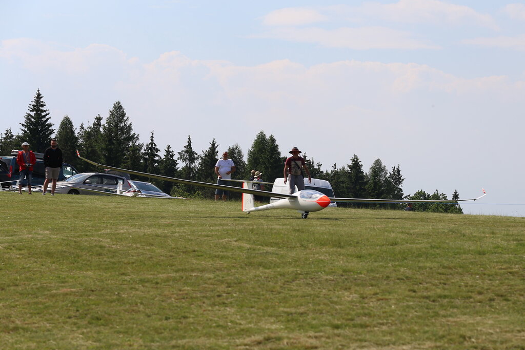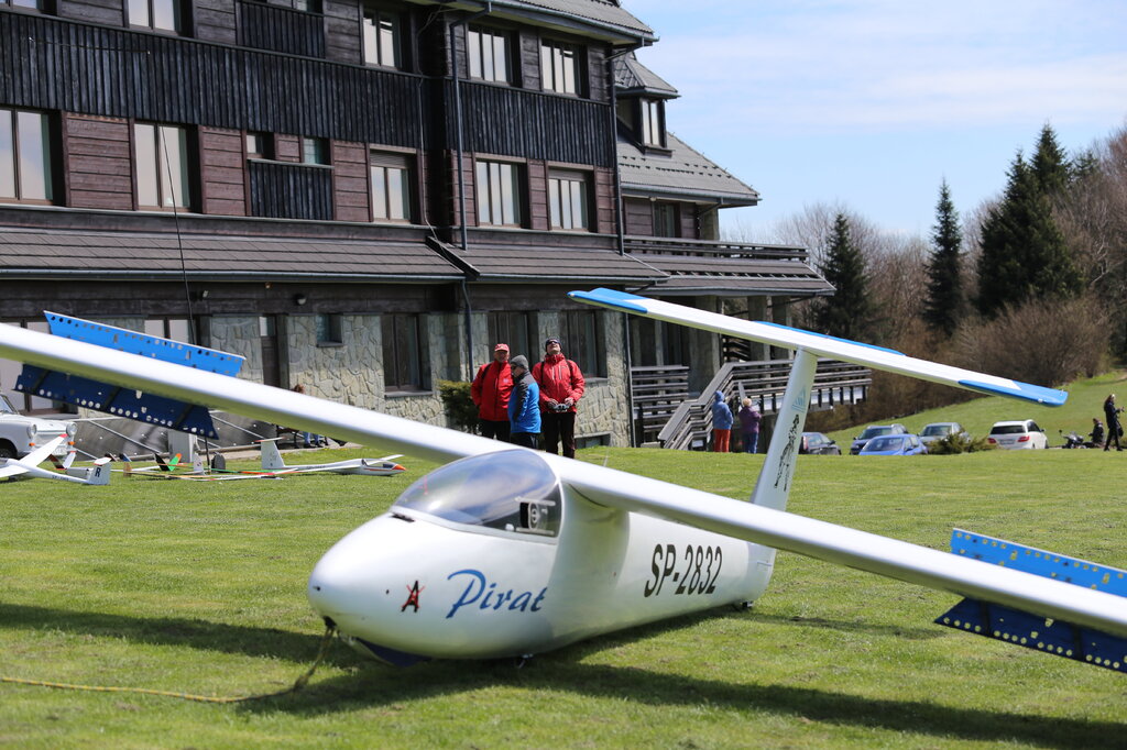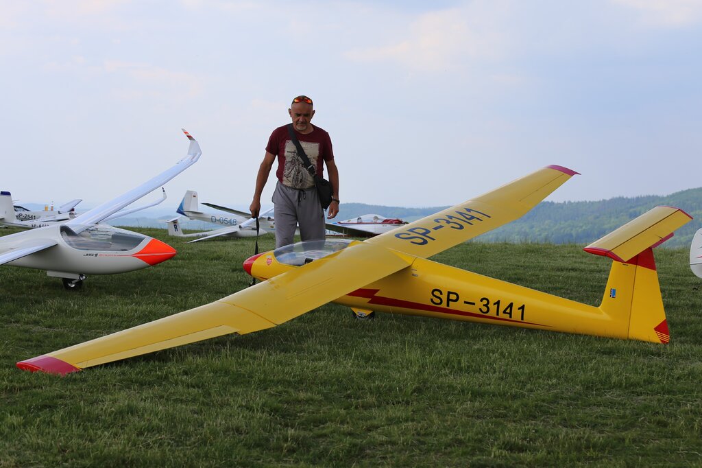 Kolejny dzień spędzony w Bezmiechowej. Warunki doskonałe. Poludniowy wiatr 6-7 m/s. Po południu 10 m/s. Słonecznie. W miarę ciepło. Jak to przy niedzieli tłumy turystów utrudniające bezpieczne lądowania. Jeszcze kilka fotek z wczoraj. Dużo Promyka. No cóż, jeden z najładniejszych polskich szybowców, świetnie latający model no i ten pilot ?. Latamy do wtorku