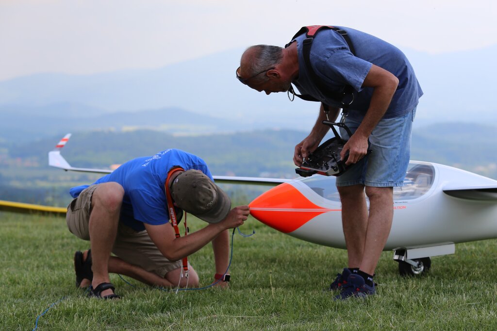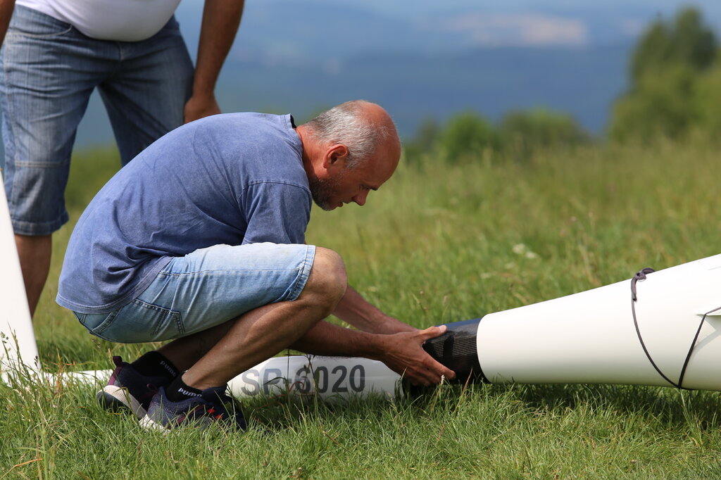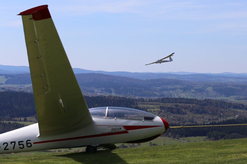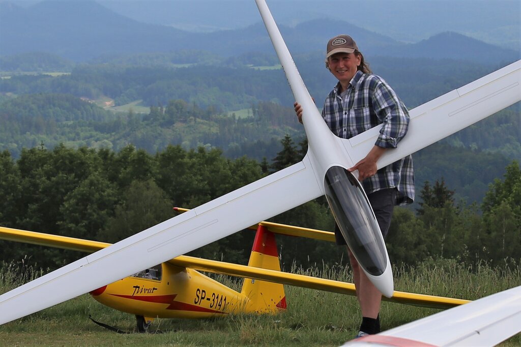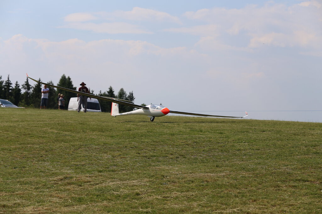 Kolejny dzień spędzony w Bezmiechowej. Warunki doskonałe. Poludniowy wiatr 6-7 m/s. Po południu 10 m/s. Słonecznie. W miarę ciepło. Jak to przy niedzieli tłumy turystów utrudniające bezpieczne lądowania. Jeszcze kilka fotek z wczoraj. Dużo Promyka. No cóż, jeden z najładniejszych polskich szybowców, świetnie latający model no i ten pilot ?. Latamy do wtorku