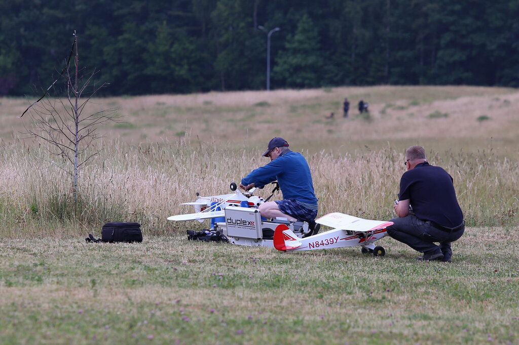Ciekawe kto kogo będzie uczył i jak długo taka znajomość potrwa . Zapraszamy na Chwarzno, ustawimy model, oblatamy, pomożemy w pierwszych lotach. W czwartek, z Piterkiem i Robertem, skośiliśmy naszą łąke. Dzisiaj w sobotę, Ci mniej i Ci bardziej doświadczeni spotkali się na oblot Krzyśka Decathlona. Niestety przechodząca burza pokrzyżowała nam plany pozwalając jedynie na wstępne dotarcie nowego silnika. Przyznam się, że Yak ciągle w aucie. Oboje liczymy, że wał burzowy przejdzie i wieczorkiem uda się jeszcze polatać . EDIT: Udało się. Tak było po przejściu wału burzowego. Silnik wstępnie dotarty. Dalej docieramy już w locie, w środe. Pogoda zamówiona .