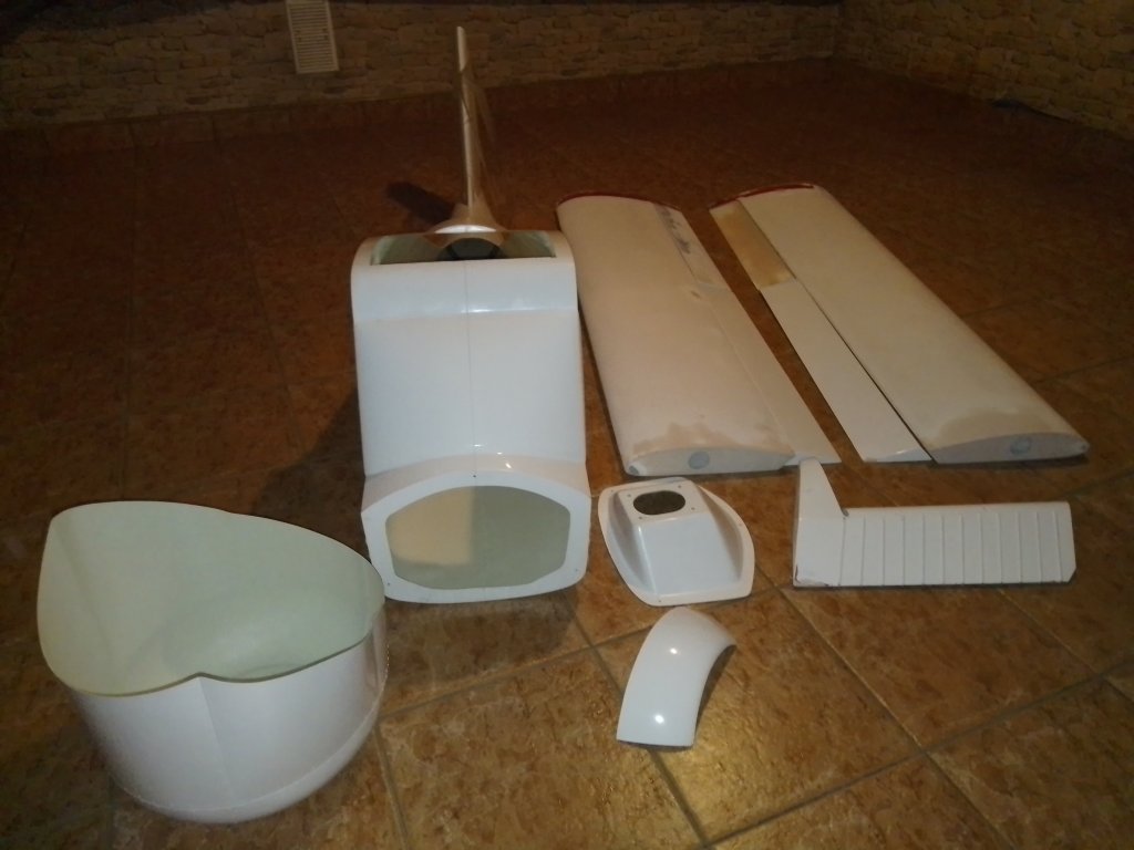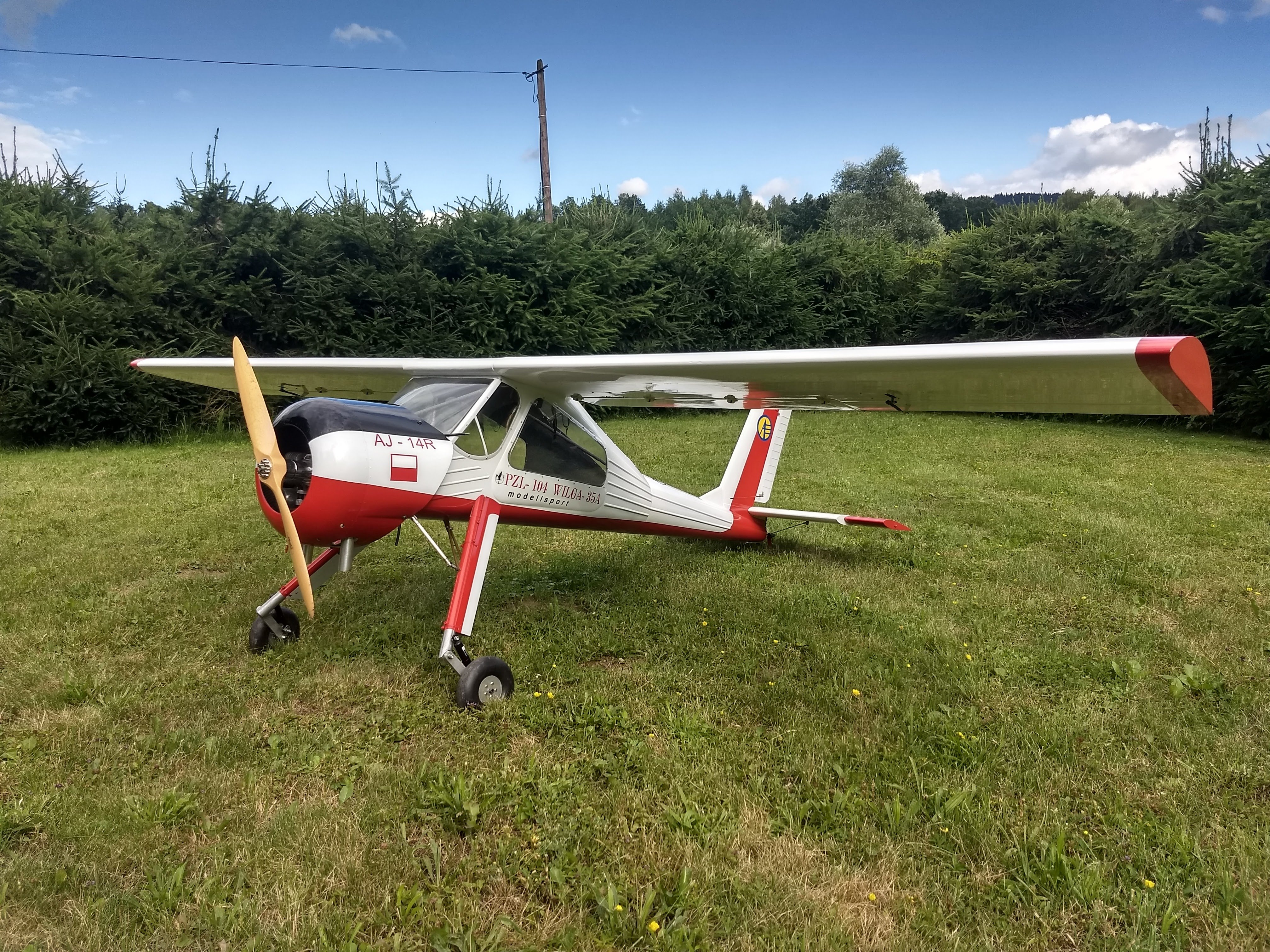 2. Sprzedam zestaw do składania PZL Wilga o rozpiętości 320cm i długości 230cm. W zestawie znajduje się: kompletny laminatowy kadłub, skrzydła, stateczniki, domek i owiewka na silnik. Brak tylko podwozia. Skrzydła i stateczniki styropianowe pokryte fornirem, w środku wzmacniane dźwigarami i cienkim płótnem szklanym przez co model wytrzymuje pętle i wolne beczki. Skrzydła są szlifowane po malowaniu dlatego tak wyglądają. W kadłubie będzie węglowe łoże na podwozie przednie i klapa od górnej części kadłuba. Kadłub i skrzydła są do malowania w dowolnych barwach. Zalecany silnik: Boxer 100-120cm. Model lata bardzo ładnie. Jedno zdjęcie przedstawia wykonany model z tego zestawu. Dodatkowe części są możliwe do zamówienia. Cena do negocjacji. tel. 500 578 701 Cena: 3480zł