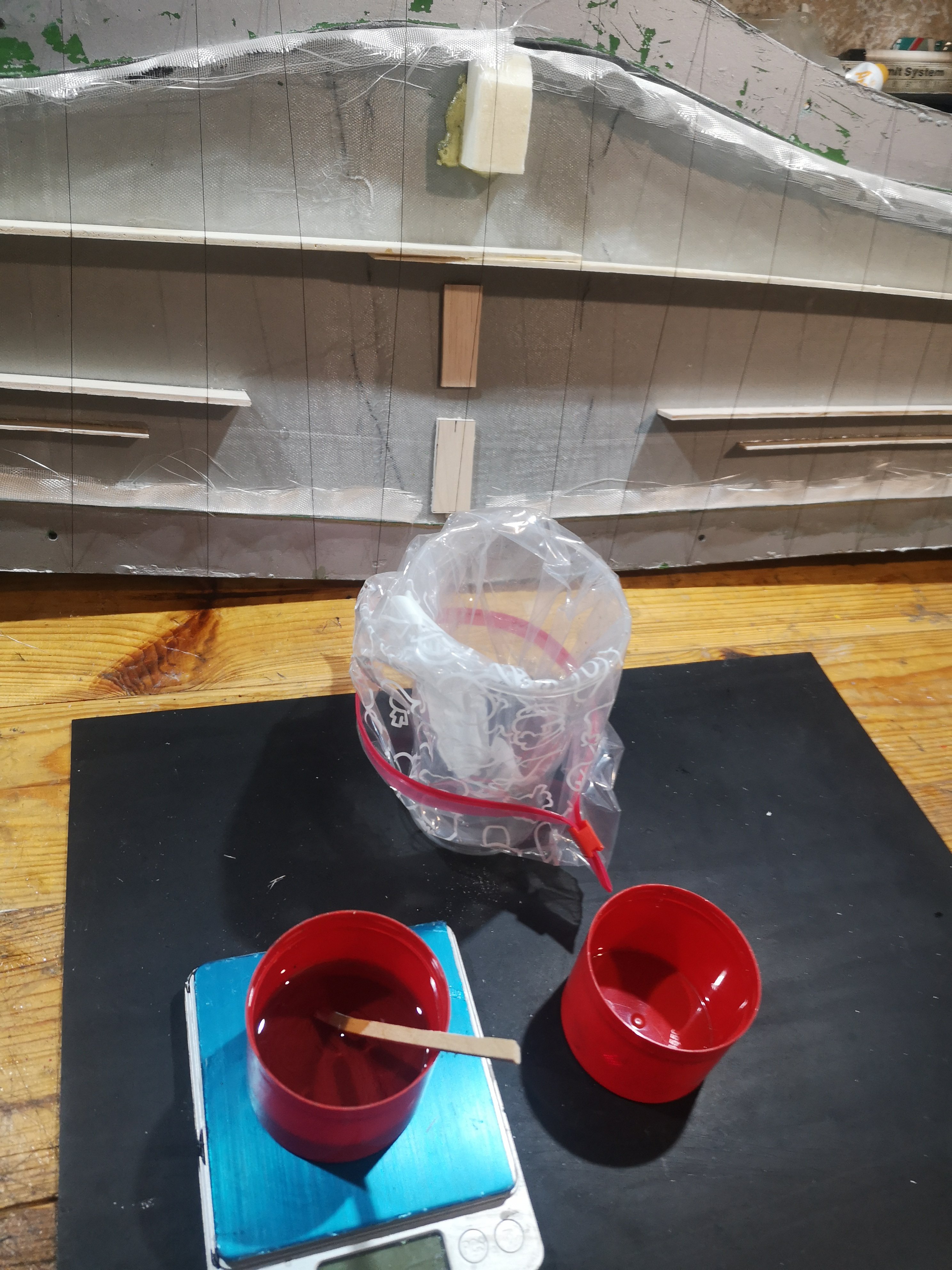 Dziś malowanie foremek skrzydła i układanie szmatki w formach kadłuba... Model niema oszklenia kabiny więc, pomysł jest taki by wydrukować coś... Albo foremkę albo samą kabinę i doklejać ją do kadłuba...