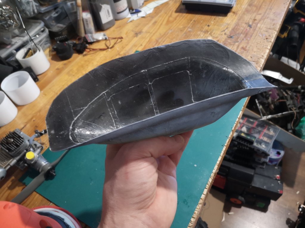 Przyszedł czas na podłogę w kadłubie, do której przymocowane będzie przednie podwozie i pakiety napędowe. Wykonałem je z sklejki 3mm przelaminowane węglem 200g/m. Wyszło pancerne ale takie miało być. Do tego wyciołem drzwi przedniego koła, wydrukowałem zawiasy i zainstalowałem tak by działało.... W ramach testów zakupiłem szpachle utwardzaną uv. Potestuje i zobaczę jak zgra się z wydrukiem 3d....Czy może ktoś już testował?