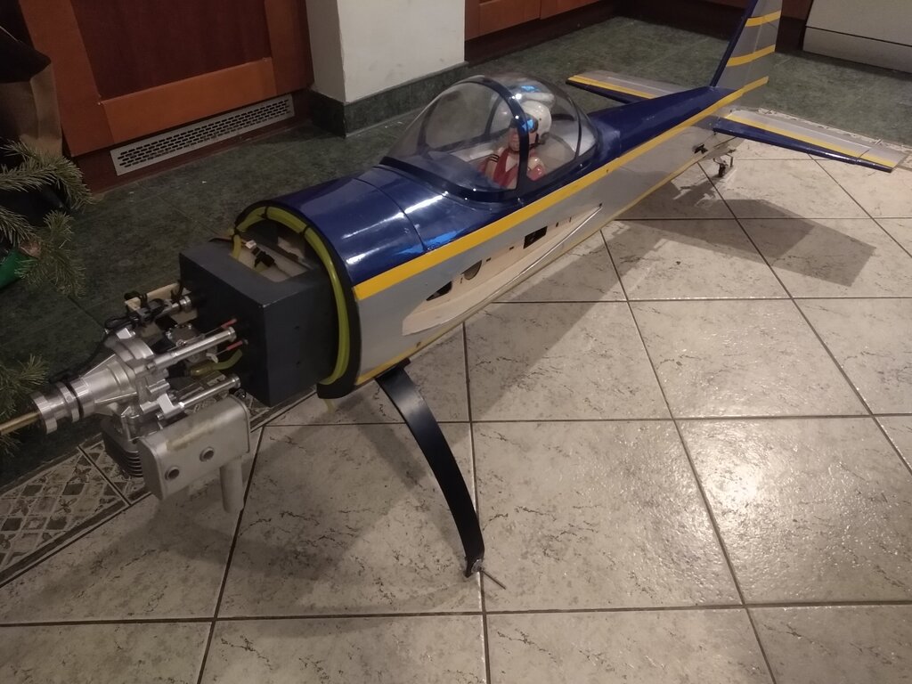Slinik umieszczony w modelu - prace toczą się powoli ale do przodu. Kiedyś marzyłem o benzynie zużywając kolejne bańki metanolu z nitro. Teraz po ośmiu latach przerwy zacząłem od benzyny chociaż tylko 30ccm.