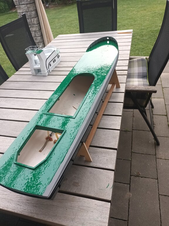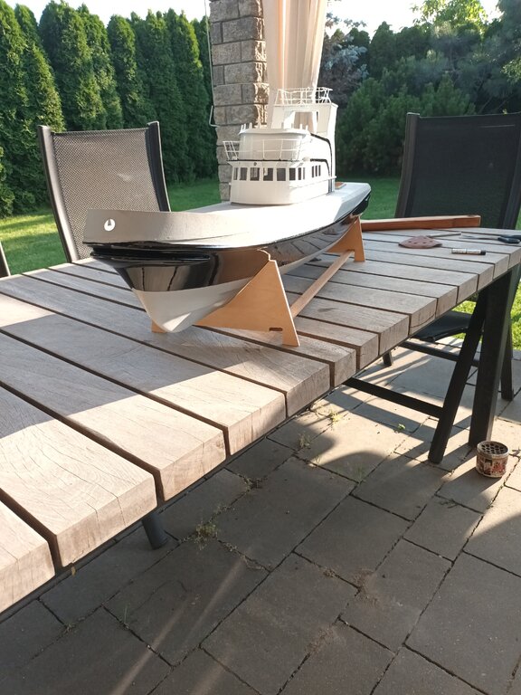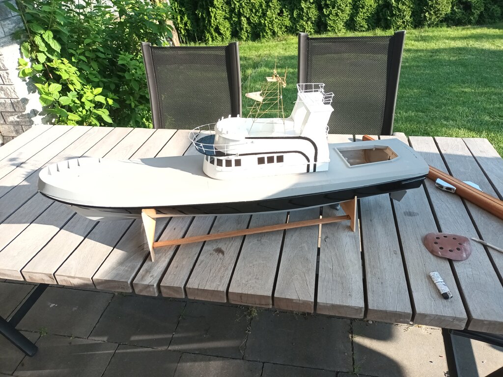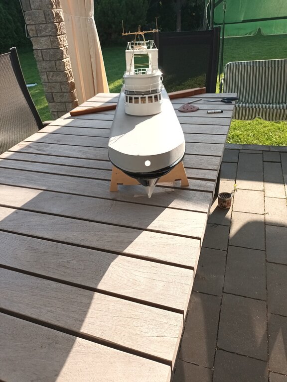 Jeszcze elektroniki brakuje mechaniki jeszcze jest masa pracy. Kadłub tylko był w wannie celem naniesienia Lini wodnej. -