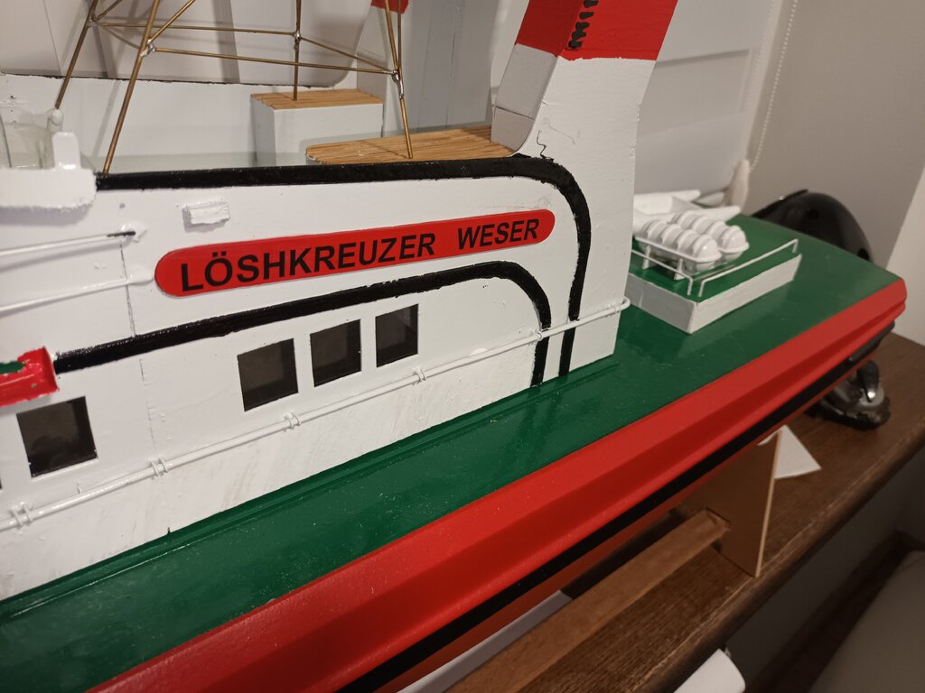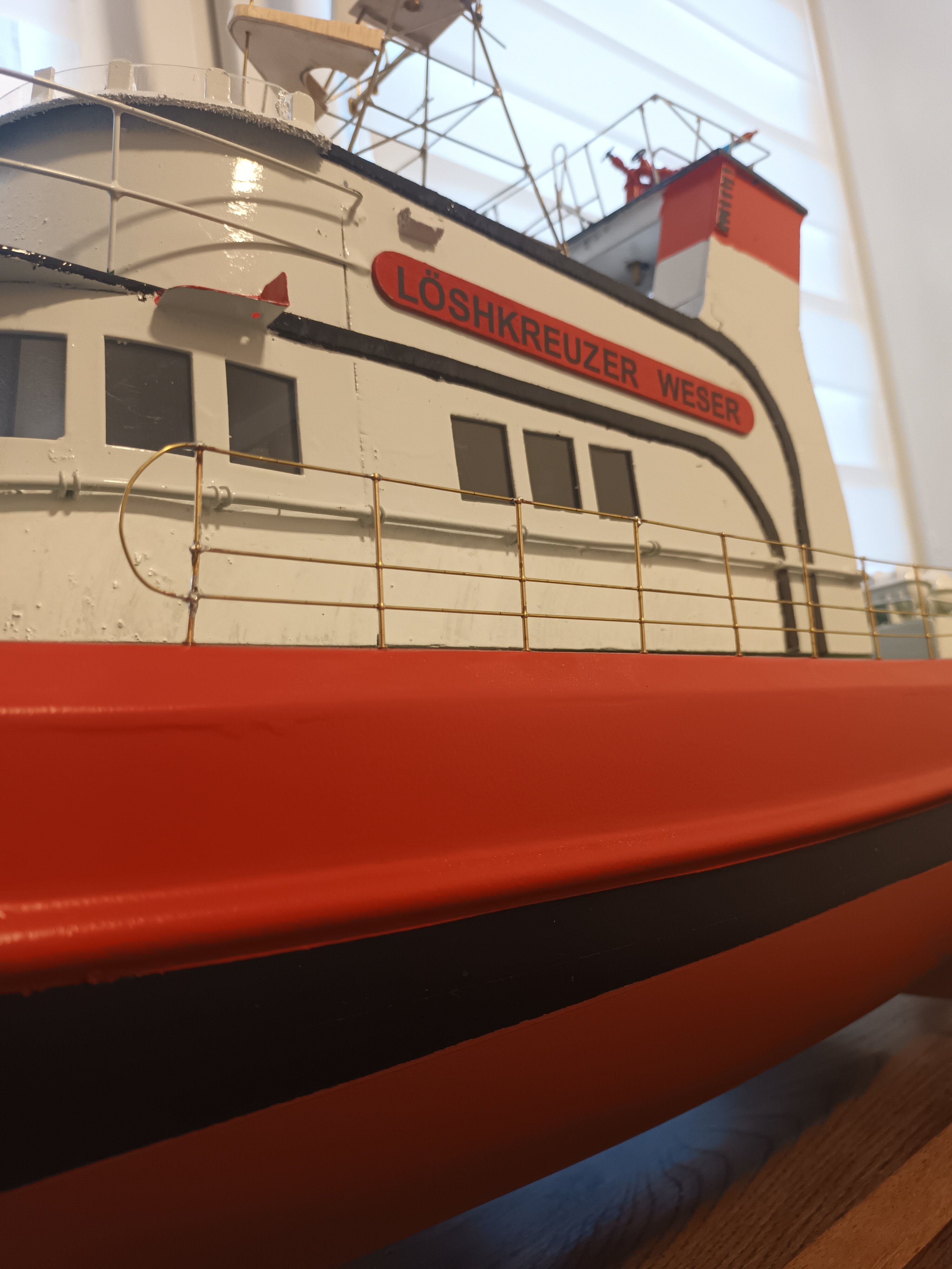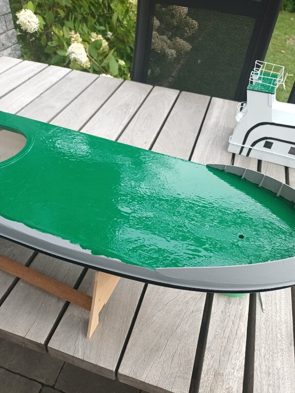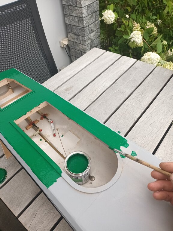 Pokład pomalowany celowo wybrałem taką metodę nakladania farby małym pędzlem by uzyskać efekt starego pokładu -