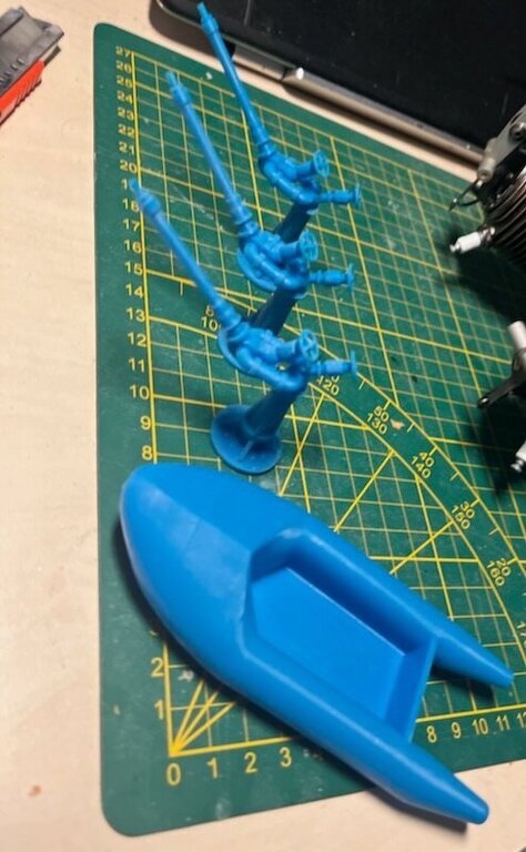 Udało się wydrukować armatki lub monitory ognia. Będą aktywne lecz zrezygnowałem z funkcji ruchomych. Jest też łódź asekuracyjna . -