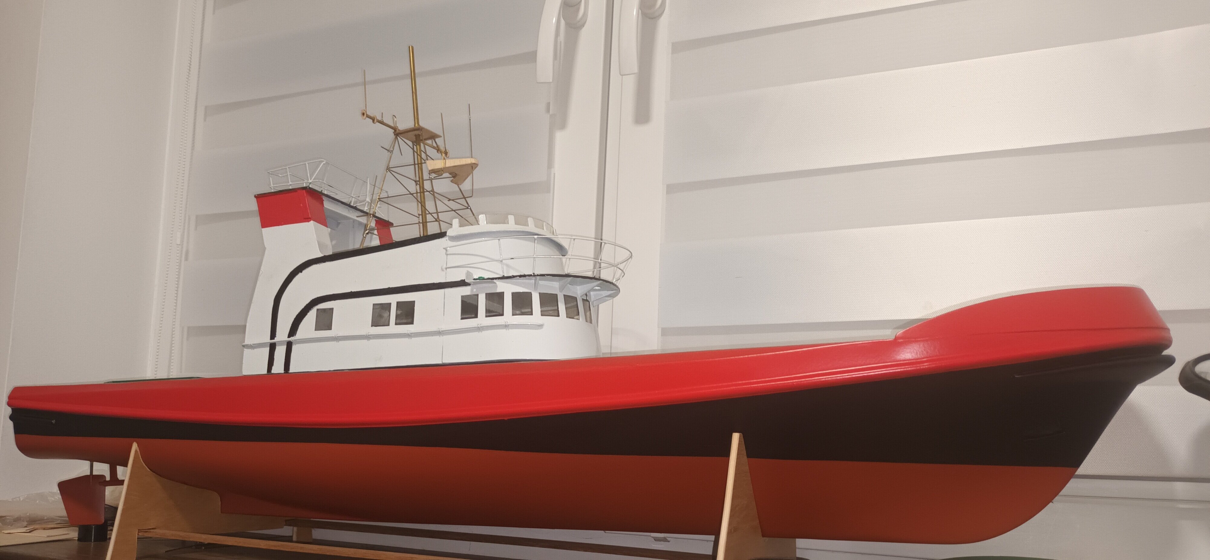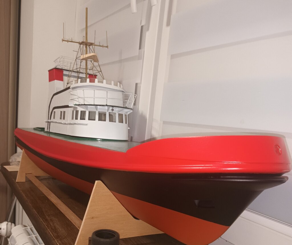 Jeszcze elektroniki brakuje mechaniki jeszcze jest masa pracy. Kadłub tylko był w wannie celem naniesienia Lini wodnej. -
