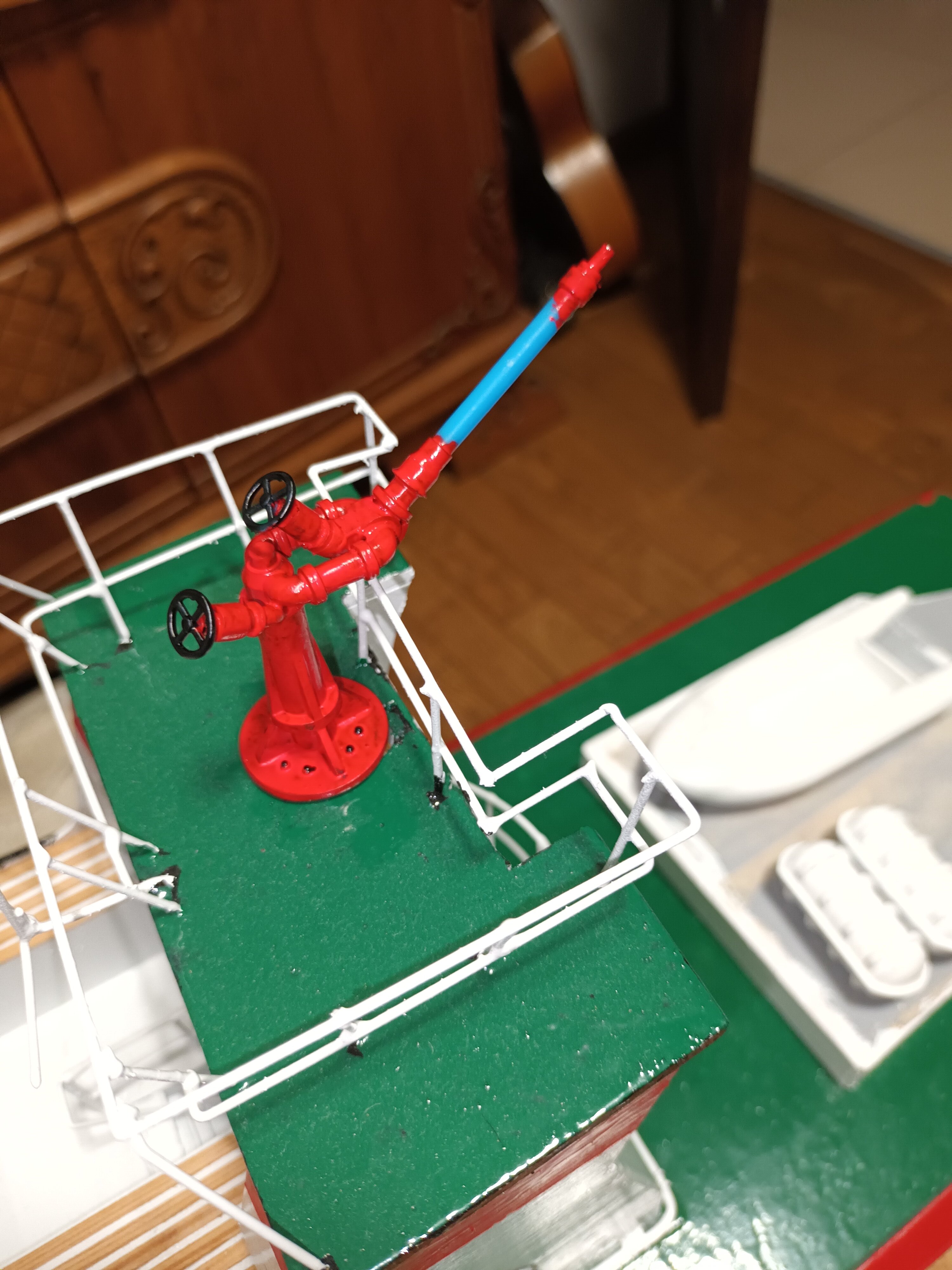 Udało się wydrukować armatki lub monitory ognia. Będą aktywne lecz zrezygnowałem z funkcji ruchomych. Jest też łódź asekuracyjna . -