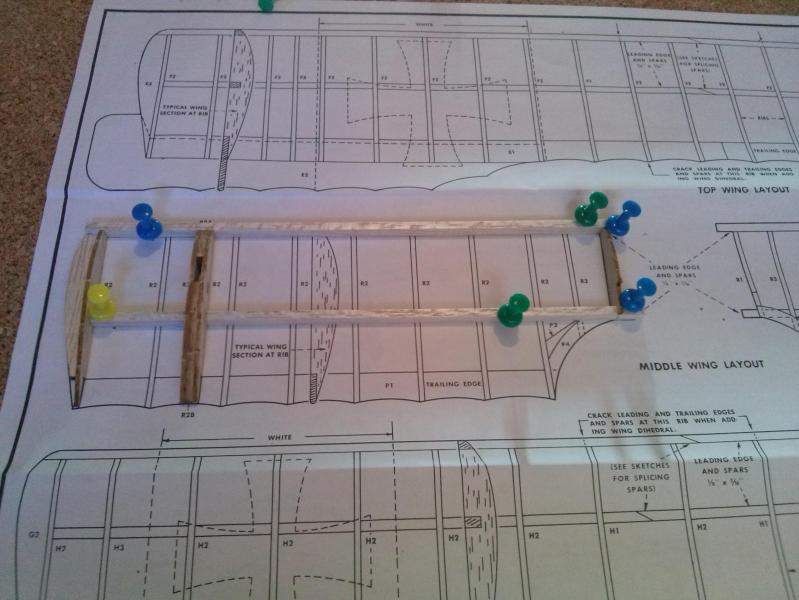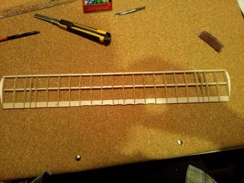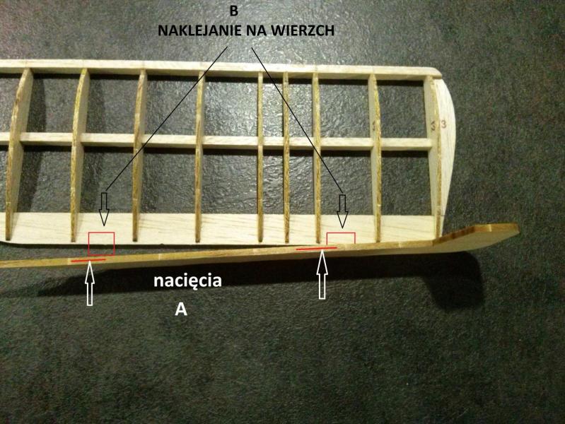 Kolejny etap budowy. Zastanawiam się jak zamocować lotki (fotka 2), rozwiązanie A nacięcia w listewce (będzie trudno - 3 mm grubości ), czy B naklejone na wierzch. Zawiasy planuję zrobić z dwóch warstw zalaminowanej foli. Znalazłem gdzieś takie rozwiązanie już zastosowane. Jest jeszcze opcja kupienia gotowych. Pokrycie skrzydeł planuję zrobić z foli termicznej, wtedy nie będzie problemu z krawędziami (taką mam nadzieję ).