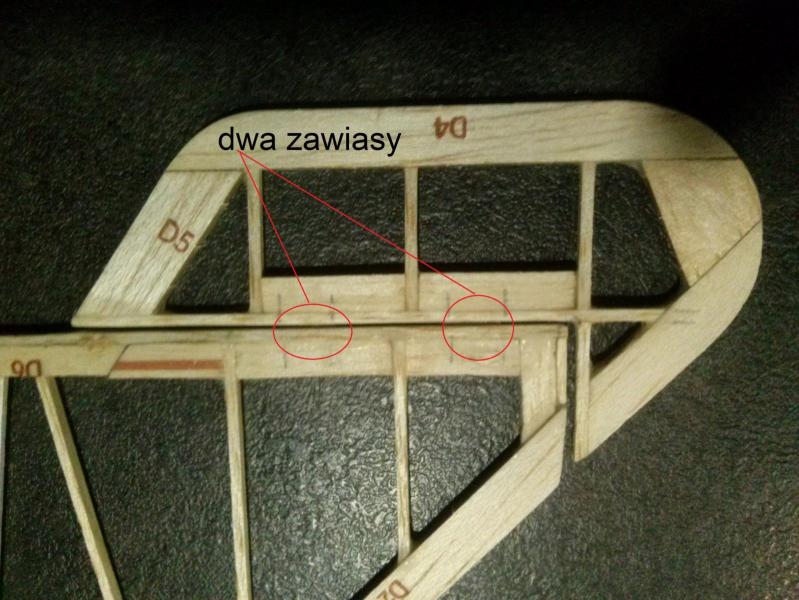 Dzięki Panowie za zainteresowanie tematem. Tą foto relację (trochę łopatologiczą - wiem) robię dla takich zielonych mośków jak ja . Dlatego dorzucam kolejne łopatologicze foty. Dzięki Piotr za podpowiedź i linki, nie na wszystkie się trafi poszukując informacji. Tą relacje z ulotniania Fokkera znalazłem właśnie na rcgroups, jednak nie wszystko kumam i będę się posilał Twoim doświadczeniem-jeśli pozwolisz. Zrobiłem test wklejając zawiasy w balse (4 warstwy foli do laminowania) i się udało, nie wiem tylko czy nie są za sztywne. Te cztery warstwy dają jednak dość wysoką sztywność. Pomimo tego, że test wyszegł dobrze to jakoś nie za bardzo mam przekonanie do dnich. Chyba wystarczający pochył lotek będzie ? Wziąłem się za kadłub i kolejne foty.