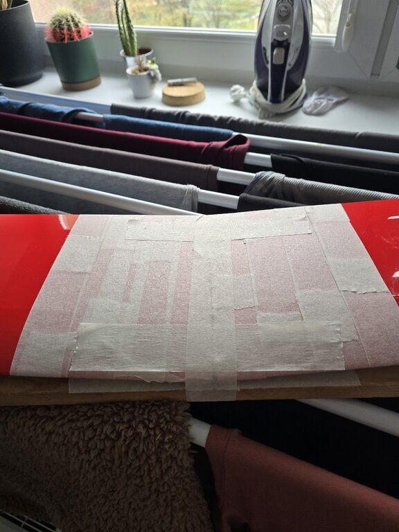 No i mamy Niedziele... Z rana chwilkę popracowałem przy modeliku. Wklejone zawiasy na ater wysokości i ster kierunku + wycięcie folii na miejscach łączenia stateczników. Okleiłem stateczniki taśmą malarską aby podczas klejenia żywicą nie pobrudzić folii.