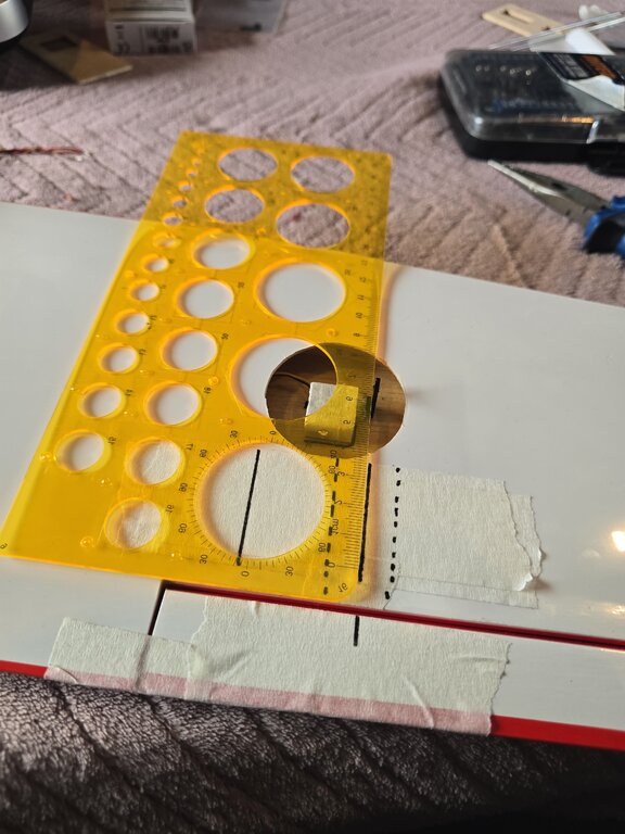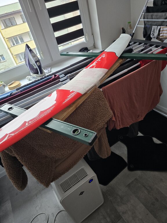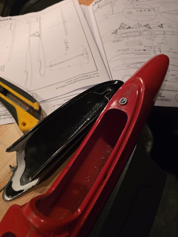 Czas ruszyć cztery litery i troszke podziubać przy modeliku. Fajna spokojna robótka na długie wieczory w domu.. Dziś niewiele ale zawsze to krok w przód. Wycięcie folii na półkę do serw lotek + montaż zawiasów z taśmy dołączonej do zestawu. W miejscu łączenia połowek skrzydła maksymalnie po brzegu wyciąłem folię aby miejsce klejenia było jak największę.