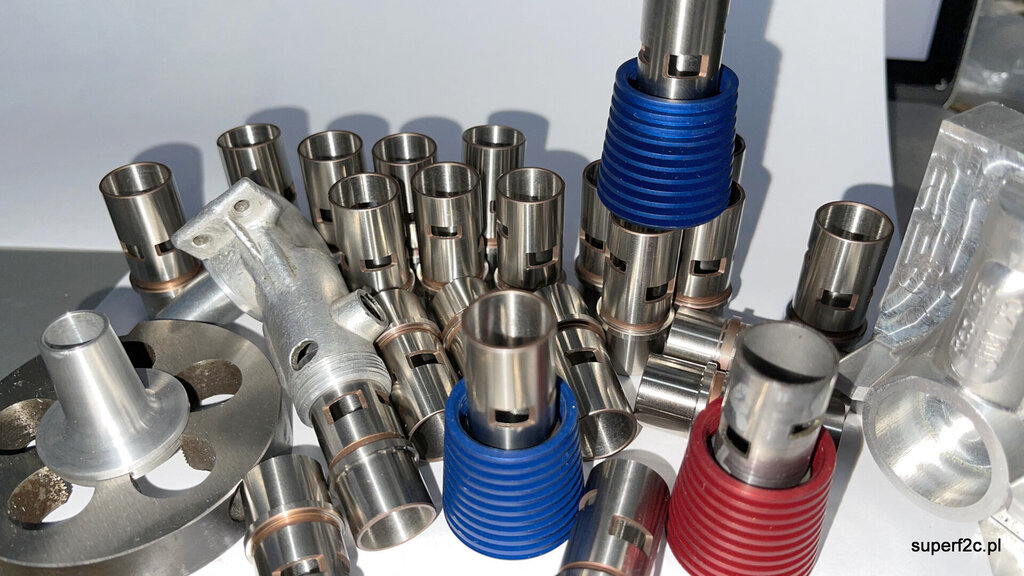 tak akurat jest to skręcone. Myślę że specjalnie, co by bez rozkręcania wiedzieć jaki rodzaj jest tu rozpylacz. Ja wykonywałem kilkanaście sztuk półfabrykatów rozpylaczy za jednym razem. I jak widać otwór nie jest w osi dyszy. Bo brakuje podkładki miedzianej zglejowanej. Brakuje także kształtu-geometrii. I na pewno to frezowałem na OUS-1. Używając do ustawienia kątów prostego wzorca nakręconego na rozpylacz i skontrowanego odpowiednio względem otworu 0,8 mm dodatkową nakrętką. Czyli obowiązuje rysunek 2.31 ze strony 53 kultowej już książki Andrzeja Rachwała "Lotnicze modele wyczynowe na uwięzi".