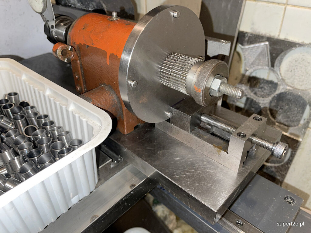jestem pewien że z tego źródła tuleja po wierzchu jest mocno na plusie a w środku mocno na minusie. Mam inne rozmiary i tak to wygląda. Poza tym fi 7 może być i na minusie bo faktyczny wymiar kołnierza panewki głównej korbowodu to fi 5,98 mm. a samo rozcinanie odbędzie się na już gotowym przyrządzie używanym przeze mnie do frezowania kanałów płuczących w cylindrze. Z tym że podział nie będzie na cztery a na dziesięć części. Tak jak i kanały w cylindrze tak też automatycznie rozetnie się tuleja ponad pół milimetra przed końcem skończę co by mi się to nie rozsypało... plus nowa podstawa co by detal był w wannie a sam przyrząd poza stołem "teowym". Najważniejsze, prawie samo się zrobi i nie będzie angażować non stop. A podejść i przestawić o 1/10 z 360 stopni jak minutnik zadzwoni to nie problem. Tak samo jak i kupić. Zamówienie napisałem a we wtorek pewnie opłacę fakturę proforma i w tym tygodniu 0,3 metra bieżącego tulei z brązu B-101 będzie u mnie w modelarni. -