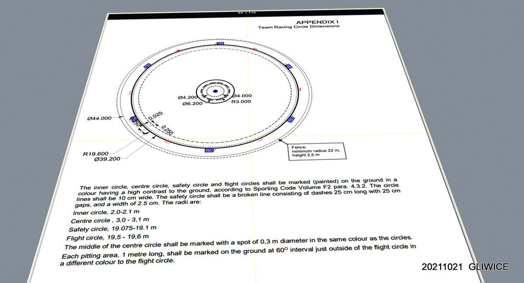 To już jest przyzwoicie zgodne z warunkami Kodeksu FAI. Brakuje tylko znaczników wysokości lotu. ? No chyba że Tor Modelarski w Gliwicach ma być zatwierdzony przez szanowne grono z Komisji Modelarskiej. Z tego co wiem nieuczestniczące w tym projekcie...