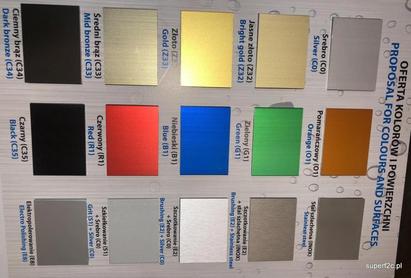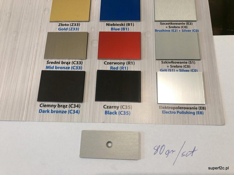 Część elementów silnika SiM 2b jest już gotowych. I tak jak w oryginale bez jakiejkolwiek dalszej obróbki chemicznej. Leży i czeka na resztę elementów. Pomysł na upamiętnienie siedemdziesięciolecia powstania silnika to stosowny napis plus kolorowa albo bezbarwna eloksalacja. (eloksalacja, od elektrolityczna oksydacja aluminium)czy jak kto woli anodowania. Głównie w celu zwiększenia twardości i odporności na korozję czy przypadkowe otarcia. chyba przed tego typu ingerencją to anodowanie nie zabezpieczy. ale używam od 2013 roku laptopa z aluminium anodowanego. Mysz czy inne elementy szurają a powierzchnia dalej ładna, nie porysowana. przykładowe dostępne kolory o oznaczonym symbolu i powtarzalnych odcieniach: i najważniejsze. Obróbka chemiczna blaszki z Al o wymiarze najdłuższym 60 mm kosztuje 80 groszy za sztukę przy umiarkowanej serii. -