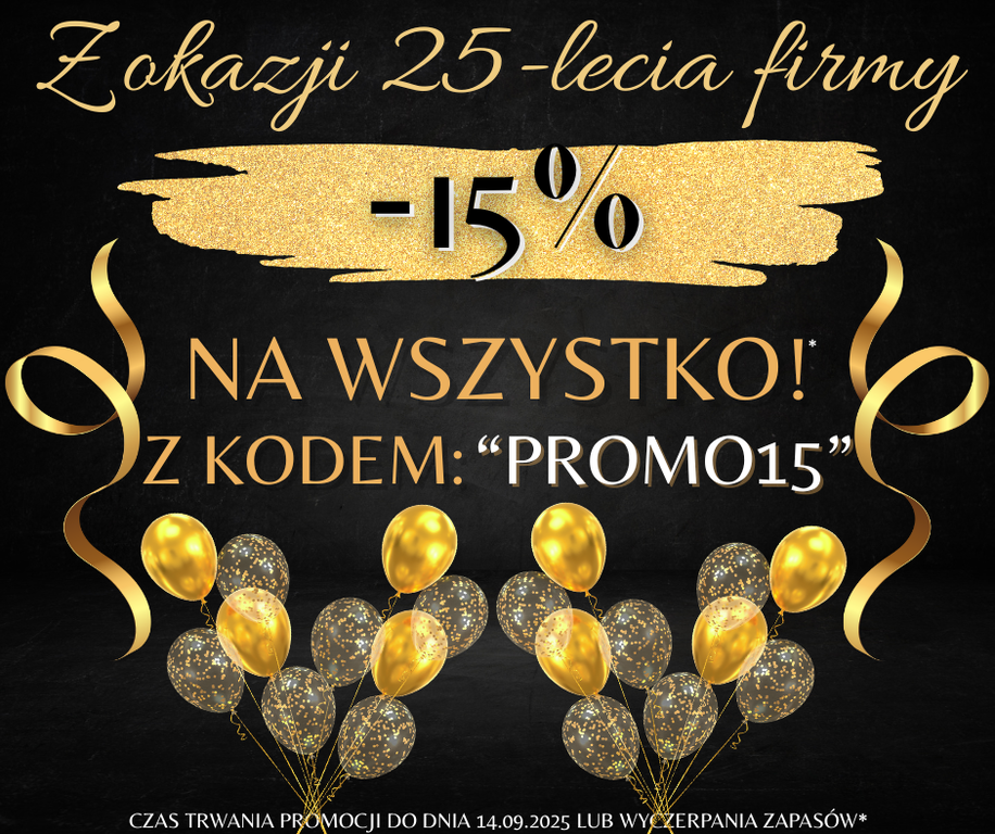 Dzień dobry ! Jest nam niezmiernie miło Państwa poinformować, że nasza firma właśnie obchodzi swoje 25-lecie działalności! To już ćwierć wieku pracy z modelarzami i dla modelarzy, w czasie którego dostarczamy Państwu wszystko, co potrzebne do uprawiania naszej wspólnej pasji - modelarstwa ! Z okazji naszego jubileuszu - ogłaszamy wielką promocję na WSZYSTKIE produkty z naszej oferty: Począwszy od chwili publikacji niniejszej informacji o promocji i wyłącznie dla zamówień złożonych nie później niż w dn. 14.09.2025 - tylko przy wpisaniu kodu promocyjnego " PROMO15 " - na WSZYSTKIE produkty dostępne na stanie magazynowym na stronie www.modele.sklep.pl otrzymacie Państwo dodatkowy rabat -15% !!! Jak skorzystać z kodu promocyjnego ? 3 proste kroki: 1. do dnia 14.09.2025 złóż zamówienie na dowolną ilość, dowolnych dostępnych na stanie magazynowym produktów z oferty dostępnej na naszej stronie 2. na stronie podsumowującej koszyk zakupów, w lewym dolnym rogu strony wpisz kod promocyjny PROMO15 i kliknij "Aktywuj" 3. Rabat -15% zostanie naliczony automatycznie i wartość koszyka zostanie odpowiednio pomniejszona: Serdecznie zapraszamy !!!