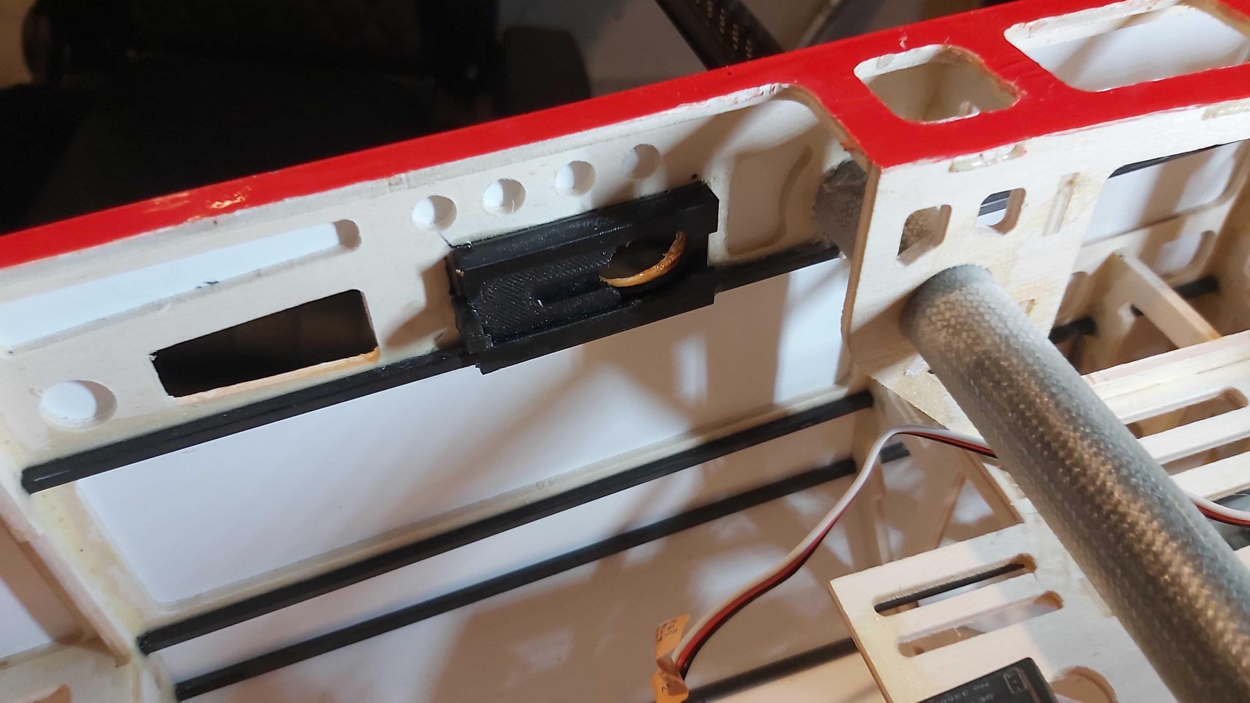 Są postępy, model praktycznie skończony zostało pomalować maskę i pomalować owiewki ale...... z owiewkami jest mały problem bo chciałem je dzis zamontować i niestety ale mam za krótkie oski kół, bo nie wystarcza oski żeby wejść w owiewkę i ją podeprzeć na zewnątrz owiewki , w owiewce na ośkę miejsce jest zrobione tylko moje ośki nie sięgają , więc musze kupić dłuższe ośki. A po za tym model juz działa jak widać na filmie , a na zdjęciu zatrzaski skrzydeł, i działają tak że śruba jest wkręcona w skrzydło i się jej nie wykręca , po włożeniu skrzydła przesuwkę w zatrzasku się zasuwa , zasuwka wchodzi pod łeb śruby i wystarczy śrubę docisnąć pół czy cały obrót , i tyle , nie będzie potrzeby wkręcać i wykręcać całej śruby. Na forum_0.mp4 -