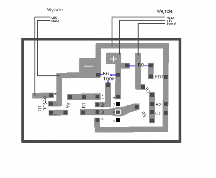 Wielkie dzięki za poświęcony czas. Musisz mi uwierzyć na słowo, byłem przekonany że rysuje ścieżki od strony elementów, co potwierdza choćby układ nóżek w scalaku. No trudno, musze jeszcze sie podokształcać w tym temacie. Mam w planach kupić elementy i zmontować to do kupy wg twojego pomysłu, dam znać czy działa Wysłane z mojego SM-G531F przy użyciu Tapatalka