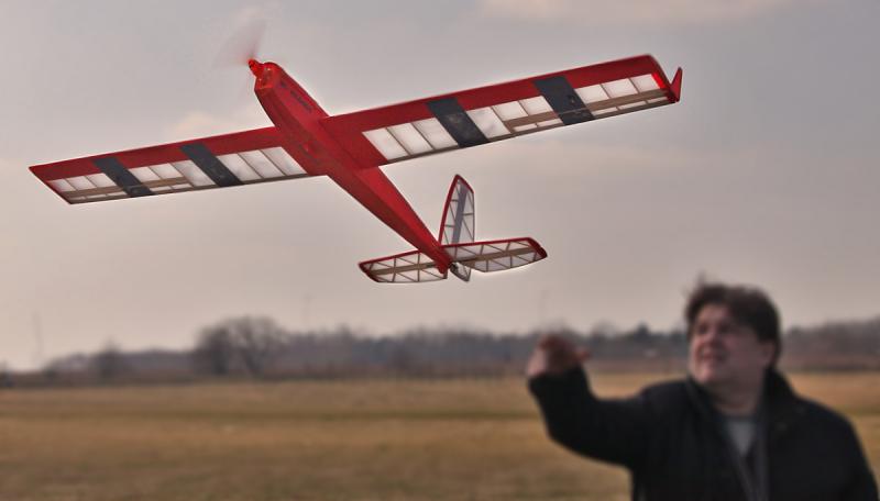 11. Jeśli skrzydło masz powyżej silnika, a wygląda że tak właśnie jest, wg. mnie skłon jest obowiązkowy. Im różnica większa, tym większy skłon. Skrzydło stawia największy opór w sumie wszystkich oporów w samolocie i model na bank będzie zadzierał. Można kompensować wysokością, ale nie o to przecież chodzi. Tak mi się wydaje. Zresztą jest do tego teoria i są wzory, zdaje się. Niech się może wypowiedzą aerodynamicy a tych u nas sporo. W ostatnim modelu skrzydło mam odrobinę poniżej silnika a i tak zrobiłem 2 stopnie skłonu, żeby zniwelować moment odśmigłowy. Lata dobrze.