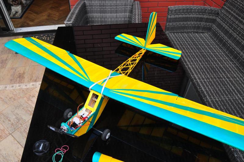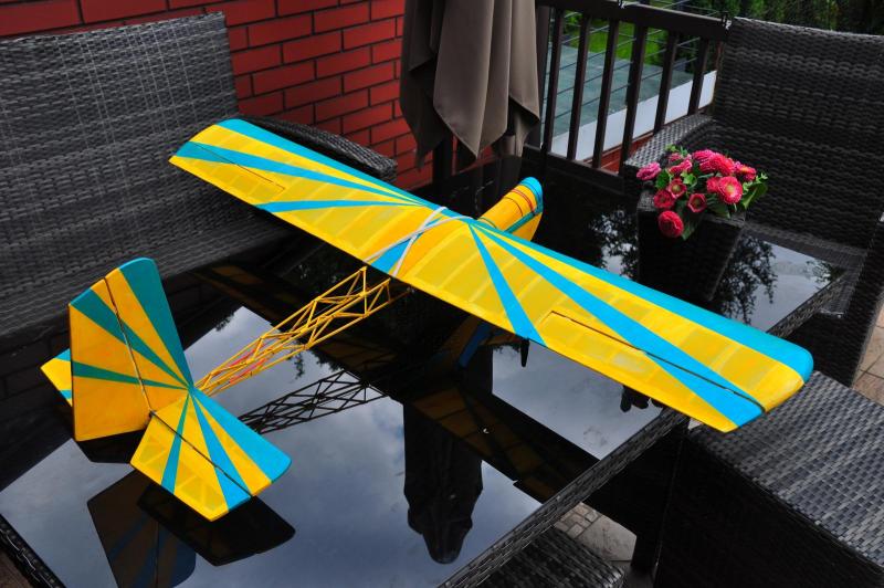 Skrzydła też pomaluj pędzlem, jak radził Bartek. Tylko pędzel prowadź wzdłuż rozpiętości a nie w poprzek czyli wzdłuż cięciwy. Będzie lepiej latał.