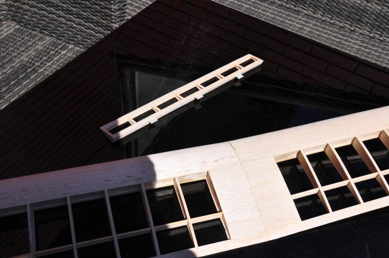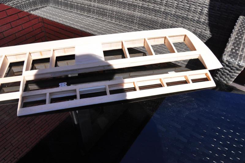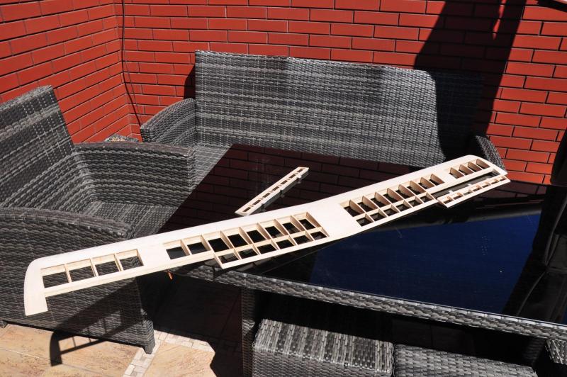 Dzisiaj siedzę w domu. Zatem popracowałem trochę przy modelu. Tak od siódmej rano. Najpierw dokleiłem surowe końcówki skrzydeł, wypiłem kawę a potem szlifowanie, szlifowanie, szlifowanie... aż do teraz. Potem był odkurzacz. Pierwszy raz od roboty boli mnie łapa. Skrzydło prawie gotowe do oklejania Koverollem. Można jeszcze gdzieniegdzie trochę przeciągnąć papierem ale już tak z lekka. Drobne niedokładności i tak znikną pod tkaniną. Lotki dostały zawiaski i nawet pasują na swoich miejscach. Jako tako, bywało gorzej. Paczki z tkaniną na poszycie wciąż nie ma. Nuuuda. -