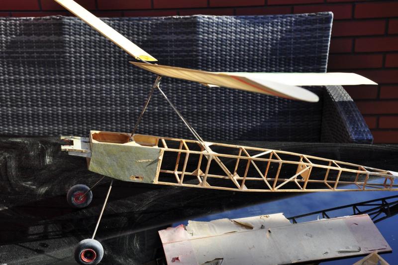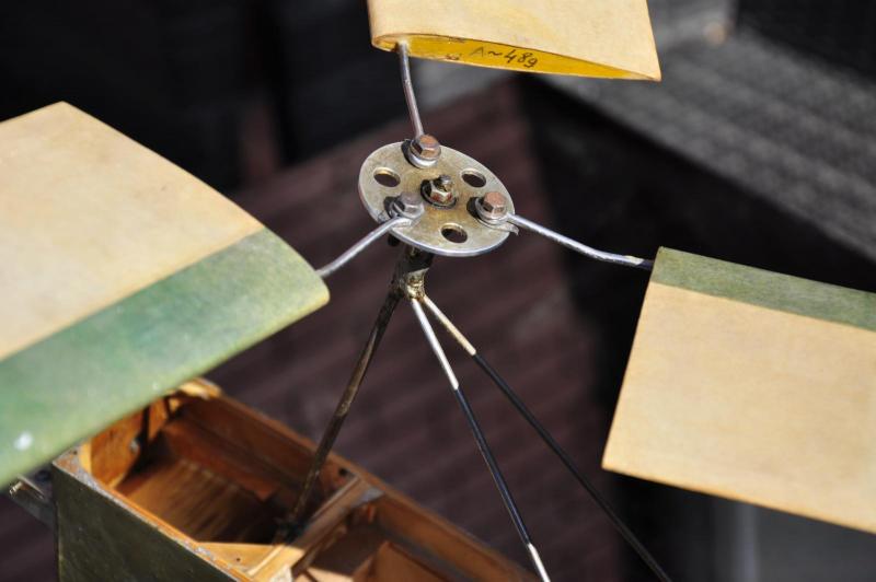 Mocowanie łopat wcale nie jest jakoś bardzo delikatne. Tym bardziej że model latał, nawet kilka razy. Potem kolega się zniechęcił ciągłymi problemami z odpalaniem ruskiego motorka. Zresztą zaczął budować lotnię, taką dużą, prawdziwą. Budowę ukończył i kilka lat latał. Kolega w ogóle to prawdziwy awiator, pilot szybowcowy, lotniarz i modelarz. Tak czy siak, słabe te łopaty czy nie, zamierzam drania ulotnić. I tak jeszcze roboty przede mną sporo, więc na razie skończę kadłub i odbuduję stery, potem " się zobaczy ". Patryk, będę wdzięczny za fotki Twojej tarczy sterującej.