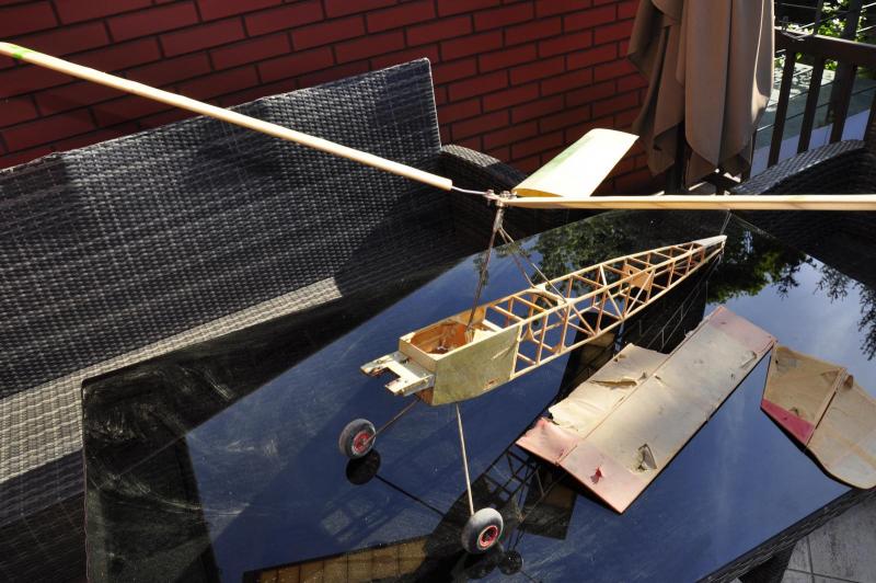 Bardzo dziękuję za podpowiedzi. Zwłaszcza rysunki bardzo się przydały. Poniżej wstawiam kilka fotek. Kadłub już " oskórowałem " ze starej japonki. Trzeba go dodatkowo wykrzyżować, bo jest bardzo wiotki i podatny na skręcenia. Trzeba również dorobić nowe stateczniki ( stare widać na fotografii obok modelu ). Latadełko ponoć cierpiało na niedostatki steru kierunku, więc nowe stery będą większe, o większym wydłużeniu a więc, mam nadzieję , skuteczniejsze. Kadłub pokryję koverallem. Łopaty wirnika zachowały się w niezłym stanie, japonka nie zetlała, więc zastanawiam się czy to ruszać i także kryć koverallem czy zostawić tak jak jest i poczekać na pierwsze próby latania.Generalnie zabawka ogromnie mi się podoba, tym bardziej że dotychczas nie miałem do czynienia z takimi dziwadłem i jestem ciekaw efektów. Klasyczne samoloty odrobinkę mi się znudziły. Patryk, co to jest " spirala śmierci " ( domyślam się ) i jak się objawia? Koniecznie muszę robić ruchomą tarczę sterującą??? Żal mi ruszać tego co jest... Mam nadzieję że Juan de la Cierva przychylnie spogląda z zaświatów na moje poczynania. Jurek, przeanalizowałem plany które mi podesłałeś. Wygląda na to, że jeśli statecznik poziomy ma profil nośny, SC jest za osią wirnika zaś jeśli jest to płaska płytka, SC wychodzi przed osią. Co zresztą jest logiczne i zrozumiałe.