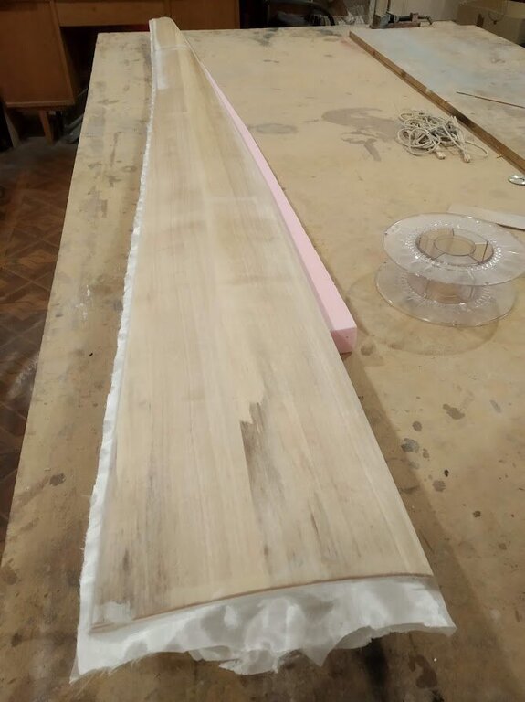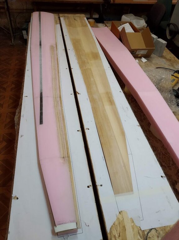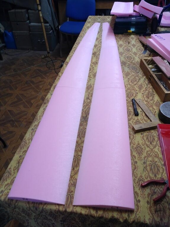 Dzięki:) Rdzenie wycinane ręcznie od szablonów wypalonych laserem ze sklejki. Krawędzie szablonów nasmarowane grafitem z ołówka, żeby drut nie skakał. Testowaliśmy też taśmę miedzianą i też to zdaje egzamin. Temperatura drutu dobrana doświadczalnie - drut ma się płynnie przesuwać pod lekkim naciskiem, bez wytapiania ogromnej szczeliny. No i zawsze wycinamy w dwie osoby. Kadłub oczywiście gotowy, odkupiony od kolegi.