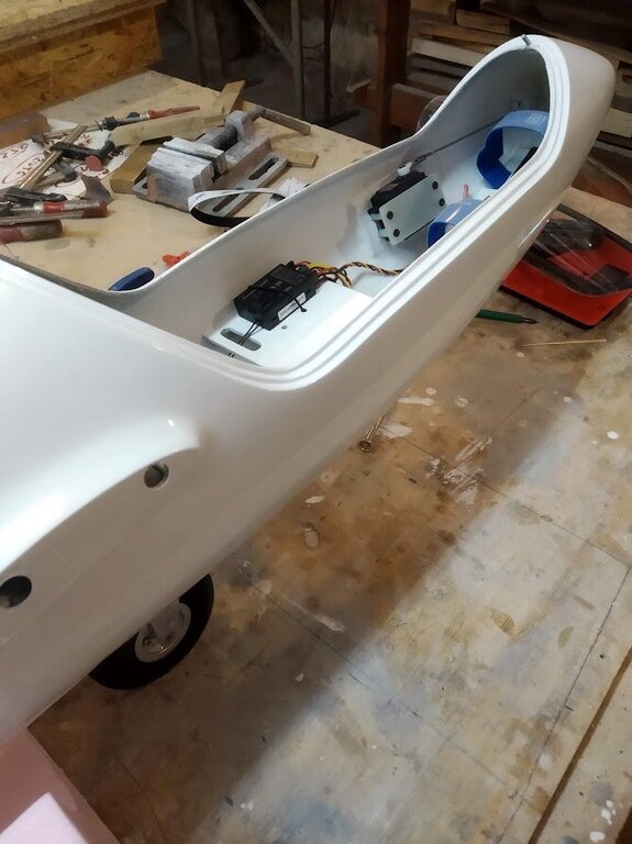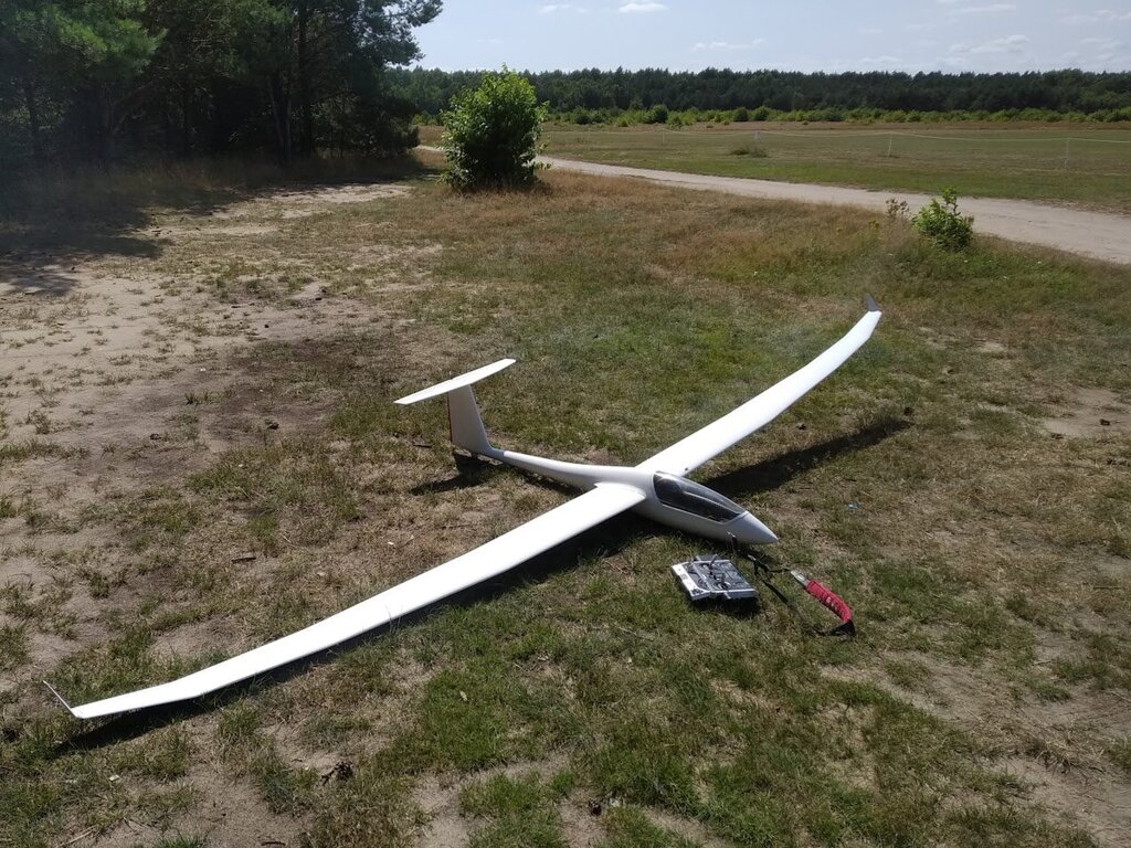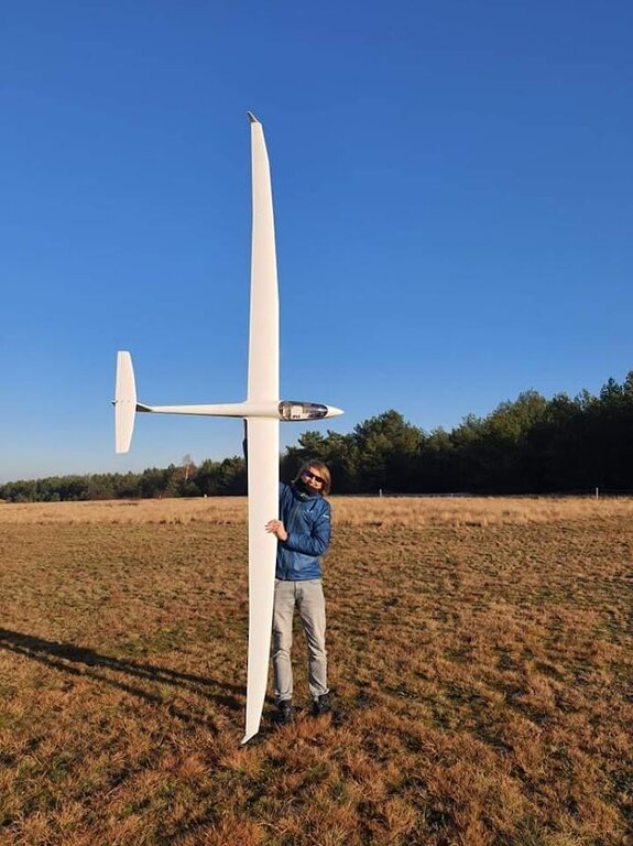Cześć! Przedstawiam krótką relację z budowy modelu Discus 2C. Opisów budowy jest już trochę na forum, więc skupię się tylko na przedstawieniu wybranych rozwiązań, które zastosowałem i sprawdziłem w praktyce (model od trzech lat jest w ciągłym użyciu). Może komuś się przyda Rdzenie skrzydeł wycięte z bloków styroduru od razu ze wzniosem. Dzięki temu można je oklejać fornirem na płaskiej desce: Pokrycie fornirowe wzmocnione tkaniną szklaną w newralgicznych miejscach: nasada skrzydła, lotki, otwory na serwa. Przez cały spływ biegnie pasek z rowingu węglowego. Dzięki temu pokrycie nie pęka przy otworach na serwa, a lotki nie wichrują się z czasem. Zawiasy lotek z delaminażu. Na końcówkach wklejone mocowania wingletu z wydruku 3D (winglety również z drukarki): Skrzydła zalaminowane tkaniną od zewnątrz - są odporniejsze na uszkodzenia, gładsze i łatwiejsze do pomalowania: Jeśli chodzi o samo malowanie, to przekonałem się w tym modelu, że nawet na kiepsko pomalowanych skrzydłach można uzyskać "efekt laminatu" z użyciem pasty i gąbki polerskiej:) Kąt zaklinowania statecznika poziomego ustalony podkładką ze sklejki. Pusta przestrzeń wypełniona żywicą z aerosilem, zostawiona do wyschnięcia z przykręconym statecznikiem (oczywiście zabezpieczonym folią). Po wyschnięciu żywicy dostajemy idealnie dopasowane łoże statecznika. Oczywiście przydatne tylko jeśli dorabiamy statecznik do istniejącego kadłuba. Wręgi podwozia przyklejone na klej Elastosil. Spoina jest elastyczna, przez co kadłub nie pęka przy twardych lądowaniach. Klapki zamykające również wklejone na Elastosil - zawias i sprężyna w jednym. Do tej pory nic się nie urwało Mocowanie serwa wyczepu - klapka ze sklejki przyklejona do burty kadłuba na żywicę z aerosolem i zalaminowana. Serwo przykręcone klapką z laminatu na słupkach dystansowych. Dzięki temu mam więcej miejsca na akumulatory w dziobowej części kadłuba: Wnętrze kadłuba pomalowane sprayem z 'efektem granitu'. Wygląda to estetycznie i przypomina wnętrza prawdziwych szybowców. Zasilanie modelu mam podwójne - dwa akumulatory Li-Fe + dwa BECe podpięte do osobnych gniazd w odbiorniku. Jak do tej pory zero problemów. A tak prezentuje się gotowy model: