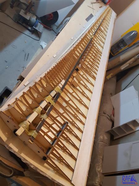 Dziękuje wszystkim za gratulacje i uznania. Ale jeszcze długa droga. Nawet półmetka nie ma. Połowa roboty będzie jak skrzydła będą skończone na gotowo i wyprowadzone zostanie połączenie (krzywizny) skrzydła-kadłub. A na razie walczę dalej - tym razem z natarciem. -