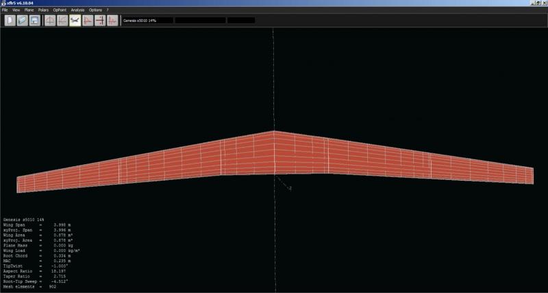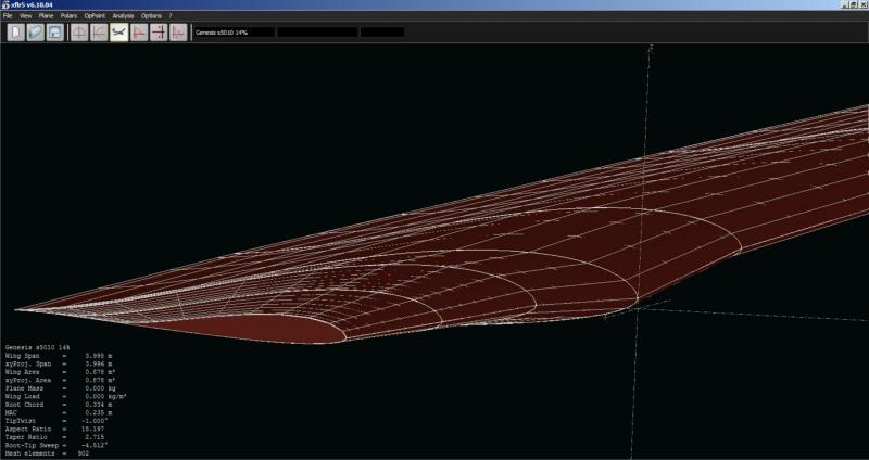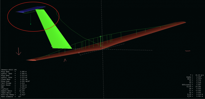 Bryła Genesis2 w xflr5 stworzona. profile: skrzydło s5010- ewentualnie eh3,0/1,2, statecznik pionowy NACA 0008, wysokości odwrócony S8025. Niestety musze się wstrzymać z badaniem modelu, gdyż program xlfr5 ma ograniczony zakres prędkości branych pod uwagę. Musze wykorzystać profili2, aby wygenerować polary - czekam na licencje. Mam pytanie czy ktoś ma jakieś rysunki i artykułu nt montażu haka holowniczego do szybowców tak do 5kg? -